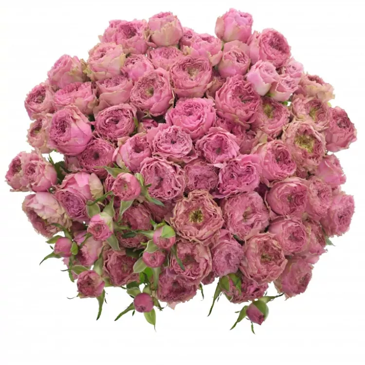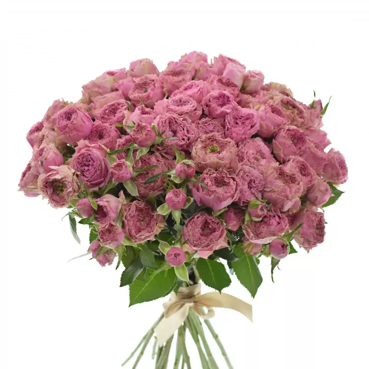 Každá mnohokvětá trsová růže má jeden stonek s více květy, proto v kytici 100+ květů může být např. 14, 20, 25 i více stonků. Počet stonků tedy přímo závisí na konkrétní odrůdě a počtu jejích květů.
