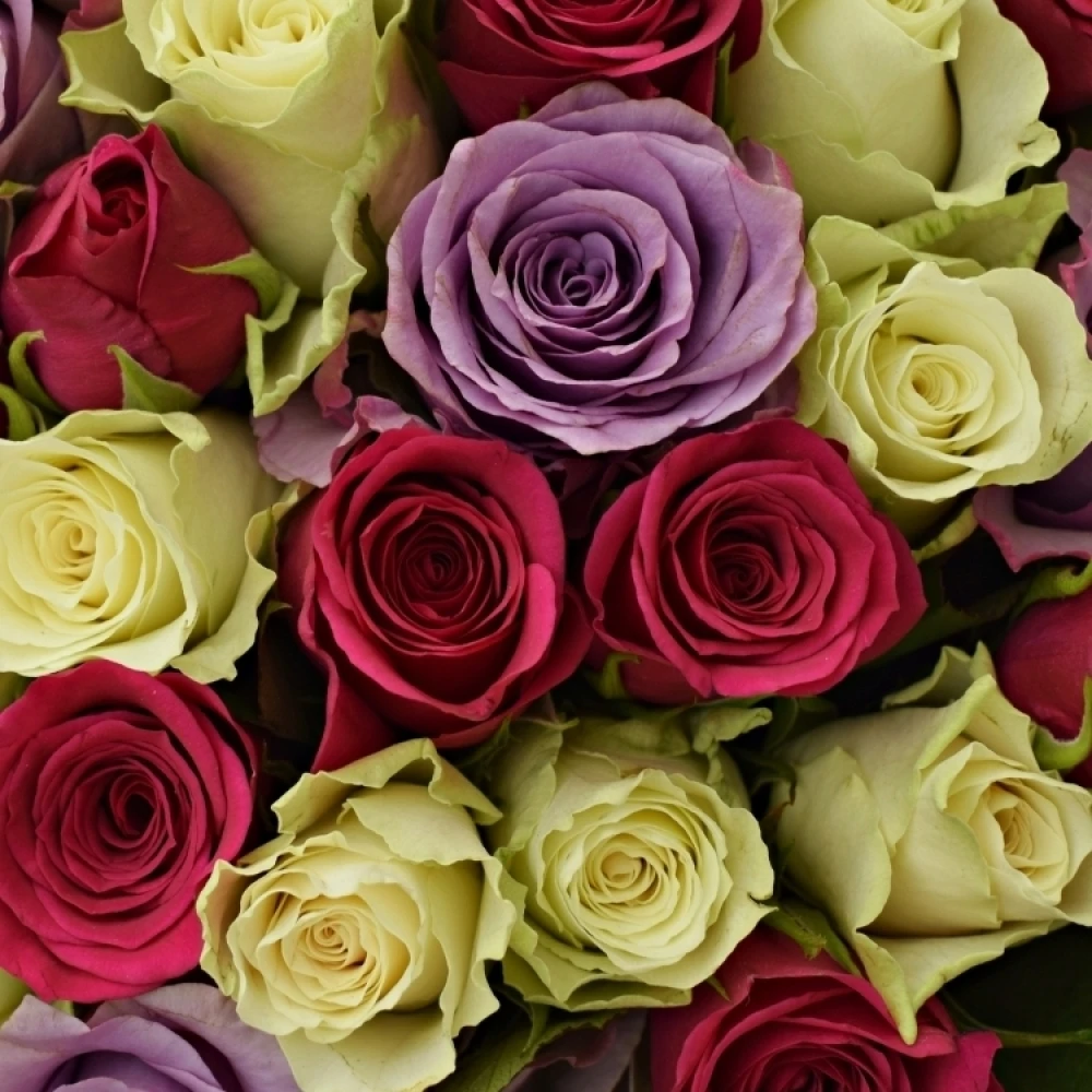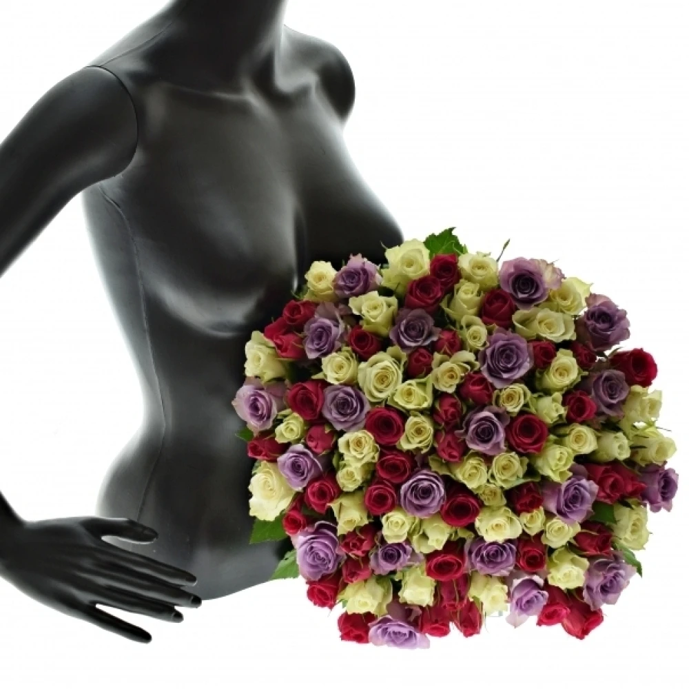 Kytice 100 míchaných růží Roni je sváteční symfonií v omamných odstínech. Její pestrost barev připomíná bohatství a radost z různorodosti života. Můžeme vám slíbit, že bude kouzlit úsměv na tváři každého, kdo ji obdrží.