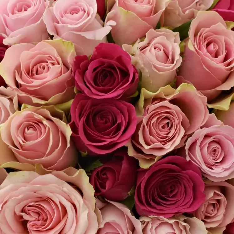 Kytice 100 míchaných růží SORIOSA je ohromující kompozice, jejíž barvy harmonicky přecházejí od jemných pastelových tónů přes intenzivní magentu až po hlubokou vínovou. Kytice je jako živý obraz, plný emocí a krásy, ideální pro výročí, narozeniny nebo jako spontánní projev lásky a uznání.