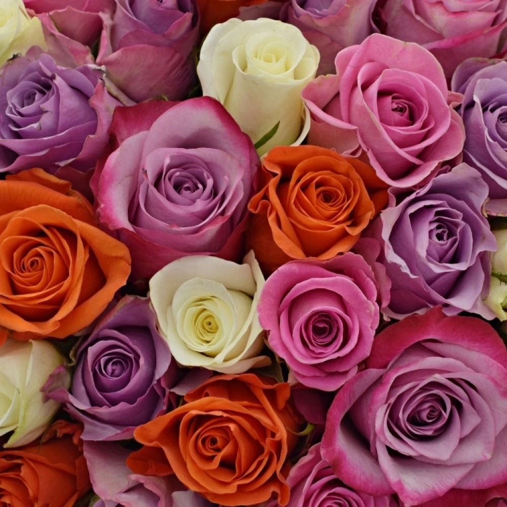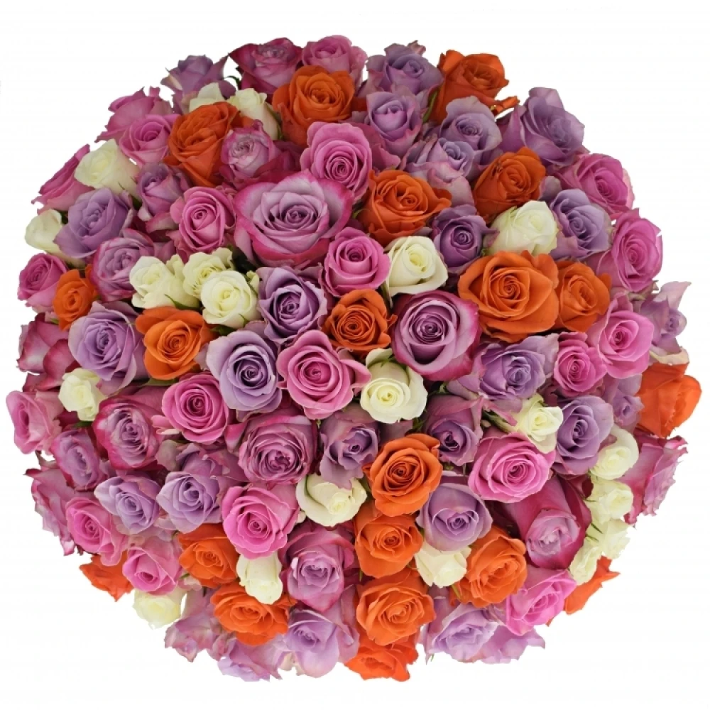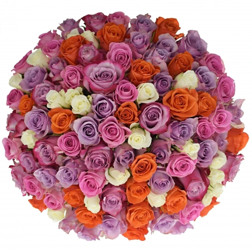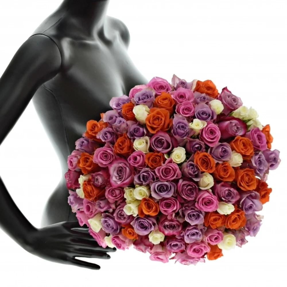 Harmonie barev, vášeň a eleganci – to vše přináší kytice DOLORRES. Sto pečlivě vybraných růží v pastelových a teplých odstínech je mistrovským dílem, které překypuje krásou a svěžestí. Od světle růžové přes pronikavou fialovou až po živou oranžovou, každá růže je svědkem kvality a elegance.