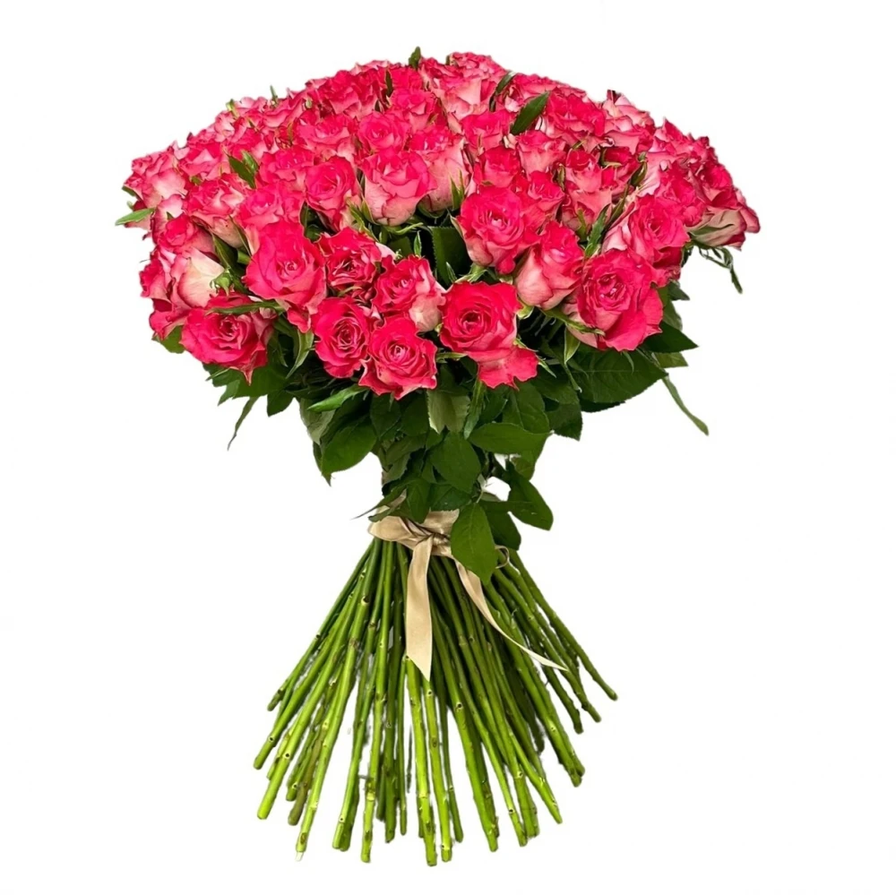 Kytice 100 růžových růží CROSSFIRE 50 cm