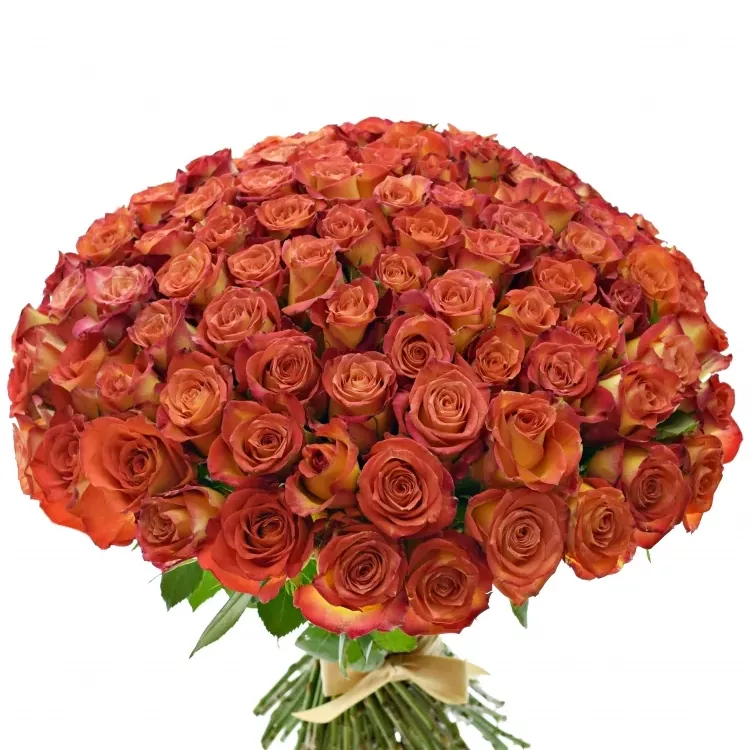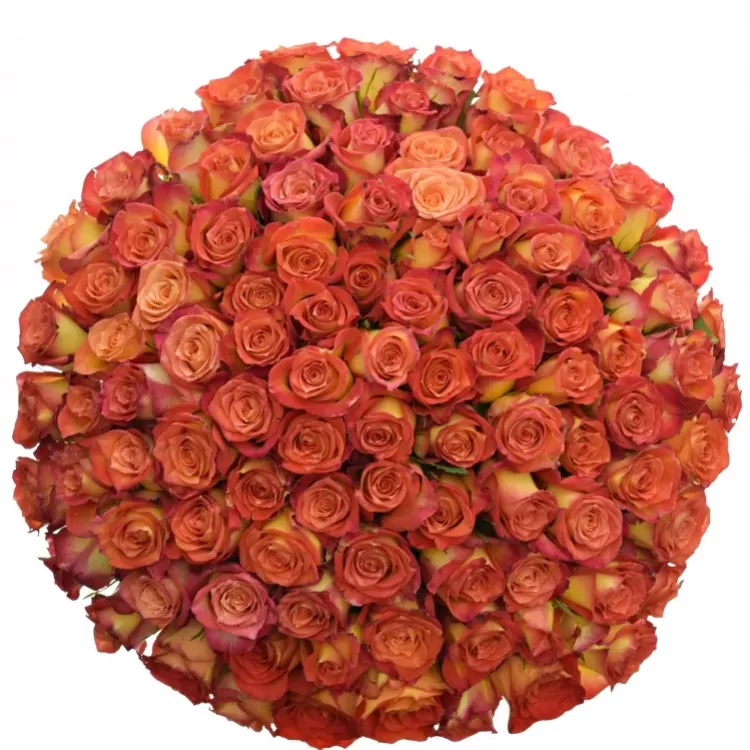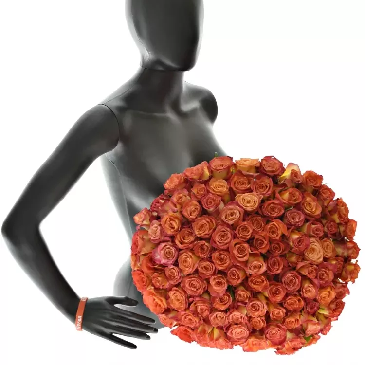 Kytice 100 žíhaných růží Utopia je oslavou ohnivých barev. Úchvatný celek v symfonii oranžové, zlata a šarlatu. Tato kytice dokáže proměnit každý moment ve výjimečnou příležitost.