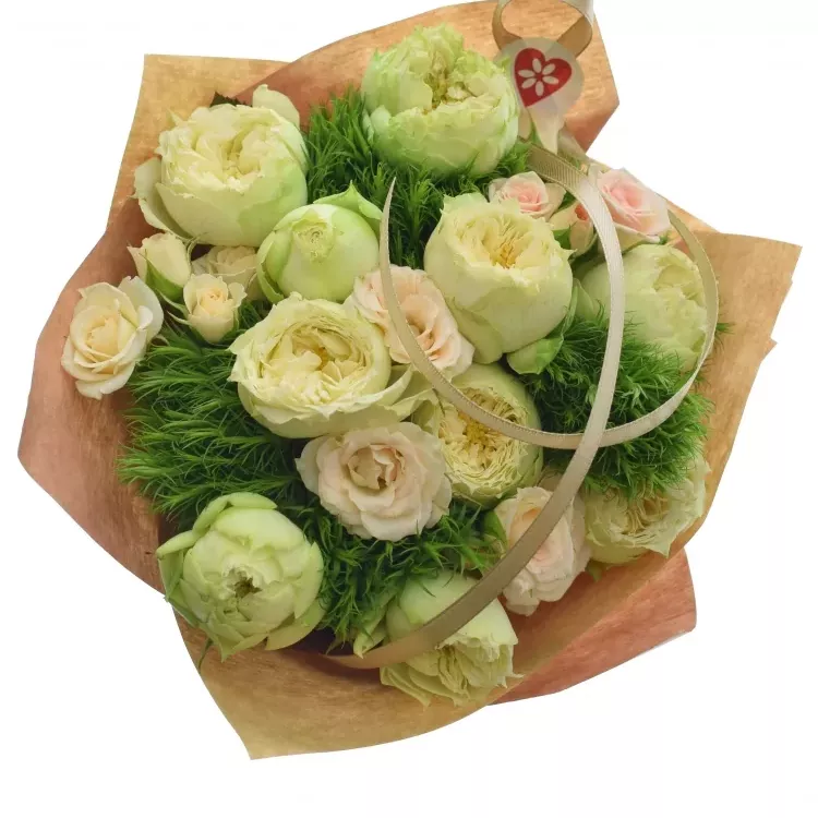 Taková kytice jako je Adelea toho má hodně co říci. Růžové růže skrývají upřímné city, pivoňkové květy krémových růží prozrazují úctu k přátelství. Zelené karafiáty je krásně doplňují a dotváří celé kouzlo. Ať už malá nebo velká verze této kytice, hodí se všechny jak pro přítelkyni, tak klidně i pro kteroukoliv ženu ve Vaší rodině.