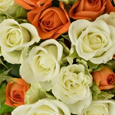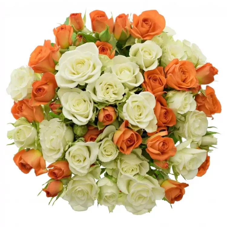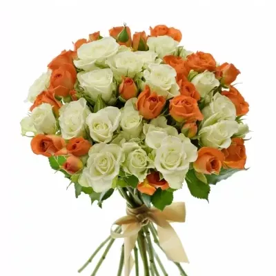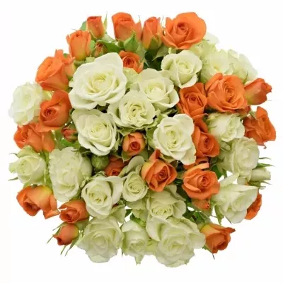 Kytice Babe Flake, sestavená z 15 trsových růží v odstínech bílé a oranžové, přináší svěží a dynamický vzhled, který odráží radost a energii letních dnů. Je ideální pro příležitosti jako jsou narozeniny, promoce nebo jako projev vděčnosti a obdivu, její barvy přinášejí pocit tepla a optimismu do každého prostoru.