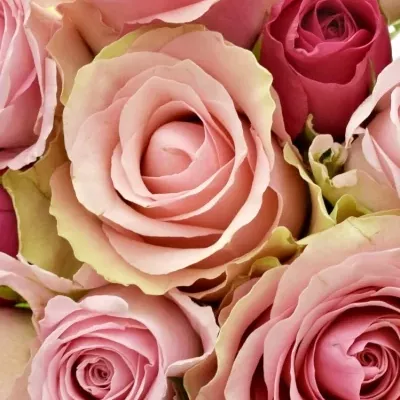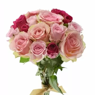 Kytice 15 míchaných růží Soriosa připomínající první jarní růže, hraje symfonii pastelových a hlubokých růžových odstínů, které spolu ladí v dokonalé harmonii. Je ideální pro momenty, kdy chcete vyjádřit uznání, vděčnost nebo lásku, ať už na výročí, narozeniny, nebo jen tak, pro radost.