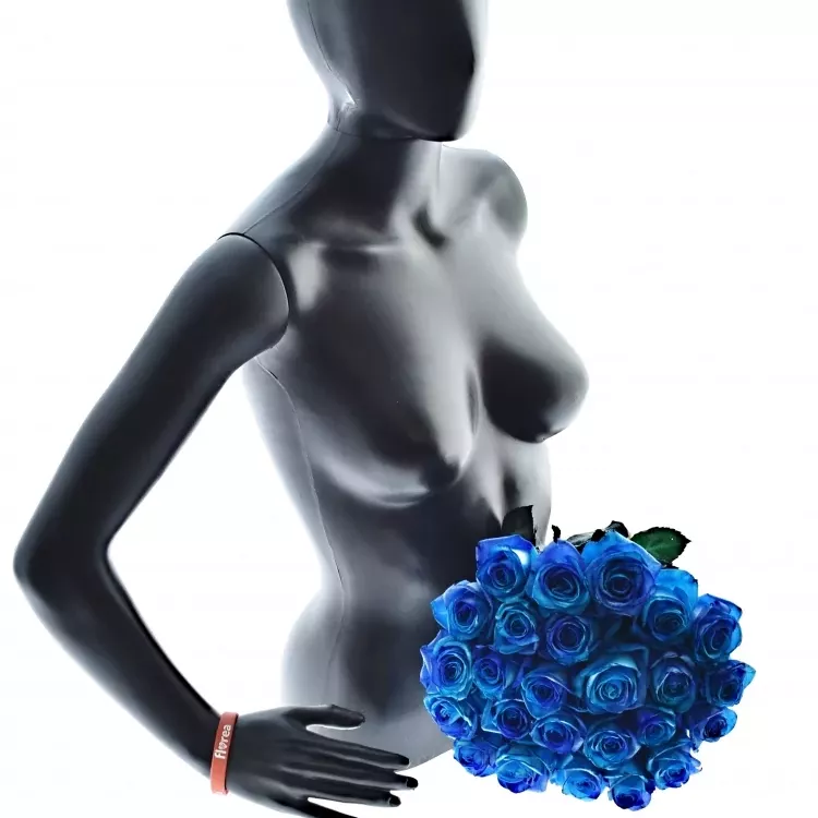 - Kytice 25 modrých růží OCEAN BLUE VENDELA 50 cm