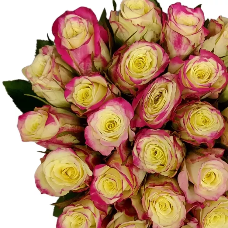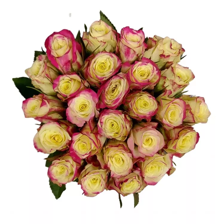 Kytice 25 žíhaných růží Alison je jako svěží ráno plné barevných slunečních paprsků. Kombinace jemných žlutých a dynamických růžových odstínů vytváří harmonický dojem, který oživí každý prostor. Tento květinový zázrak je dokonalou volbou pro oslavu narozenin, svátků, výročí, nebo jako způsob, jak poděkovat a ukázat vděčnost.