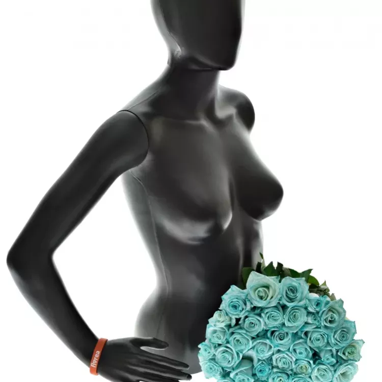 - Kytice 35 modrých růží ICE BLUE VENDELA 70 cm