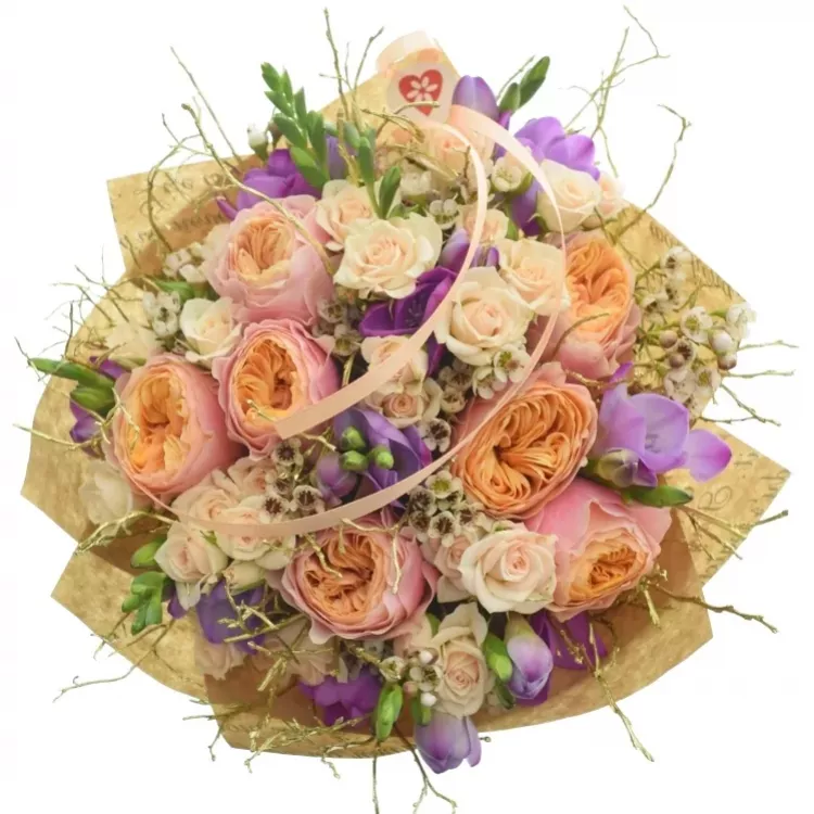 Hledáte-li elegantní kytici, ať už pro blízkou osobu nebo někoho méně známého, kytice jako je Marpessa se krásně hodí. Růže Vuvuzela s "nekonečnými" květy jsou elegantní záležitostí, kterou velmi pěkně doplňují fialové frézie. Krémové růže a voskáče vdechují kytici špetku jemnosti.