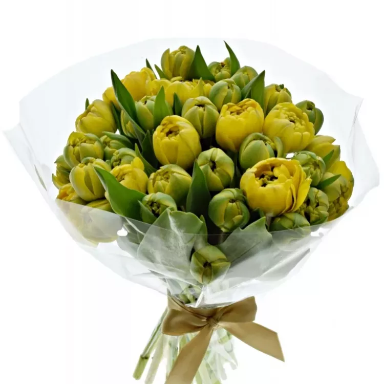 Žlutý tulipán se stal symbolem jara. A tahle kytice plnokvětých tulipánů může být symbolem vaší lásky, vděku či přátelství.