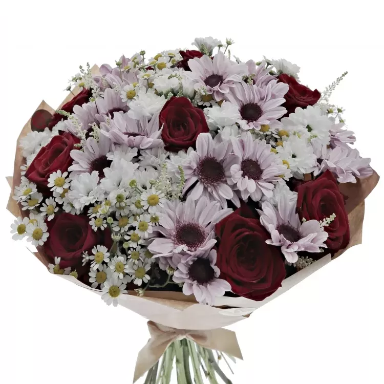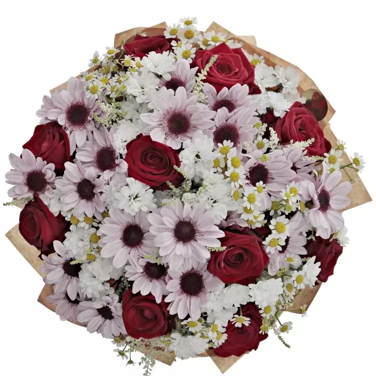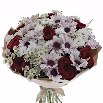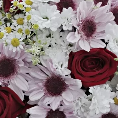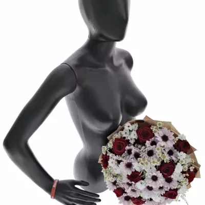Míchanou kytici Dorriene ocení především milovníci rudých růží a jejich míchaných vazeb. Povzbudivé barvy kytice přijdou vhod po náročném pracovní dni, nebo při nemoci.