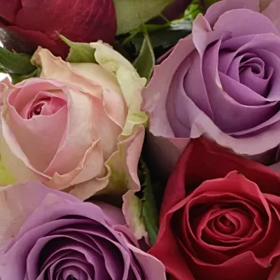 Kytice DIANNE je oslnivou harmonií devíti růží, které spojují tři zářivé barvy: intenzivní červená, romantická růžová a mystická levandulovou. Každá růže je pečlivě vybrána, aby vytvořila nezapomenutelný vizuální dojem, který oslavuje krásu a eleganci. Tato kytice je perfektní pro všechny speciální okamžiky – od výročí a narozenin po romantická překvapení a projevy úcty a obdivu.