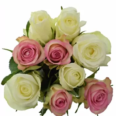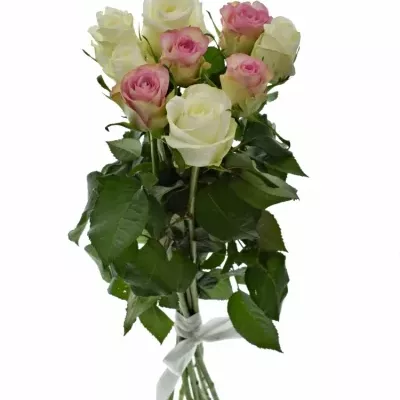 Kytice AGAPA oslavuje jemnost a eleganci v nádherném spojením bílých a růžových růží. Tyto růže symbolizují čistotu, nové začátky a upřímný obdiv, což je dělá ideální volbou pro svatby, výročí nebo jako gesto díků a ocenění. Kombinace pastelově růžových odstínů s čistě bílou přináší kouzlo a sofistikovanost, které zvýrazní každou speciální příležitost.
