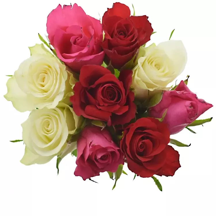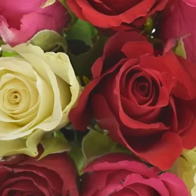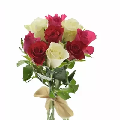 Kytice 9 míchaných růží WHITE GRACIANA nabízí nádhernou paletu barev, která spojuje bílé, růžové a červené růže. Tento barevný mix poskytuje výraznou a elegantní kombinaci, ideální pro romantické příležitosti jako jsou výročí, Valentýn, narozeniny nebo jen jako způsob, jak vyjádřit lásku a obdiv. Tato kytice je také vhodná pro oslavu úspěchů či jako projev vděčnosti.