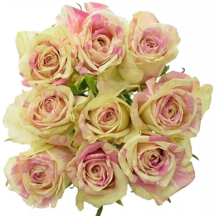 Kytice Sweet Harlequin se skládá z devíti žíhaných růží, které svými jemnými žlutorůžovými tóny okouzlí na první pohled. Tento neobvyklý barevný kontrast přináší do každého prostředí svěží a veselý nádech. To z nich dělá ideální volbu pro oslavy, jako jsou narozeniny, výročí nebo jen tak pro radost. Jejich pastelové barvy jsou také skvělé pro povzbuzení blízkých nebo jako prostředek pro vyjádření díků a uznání.