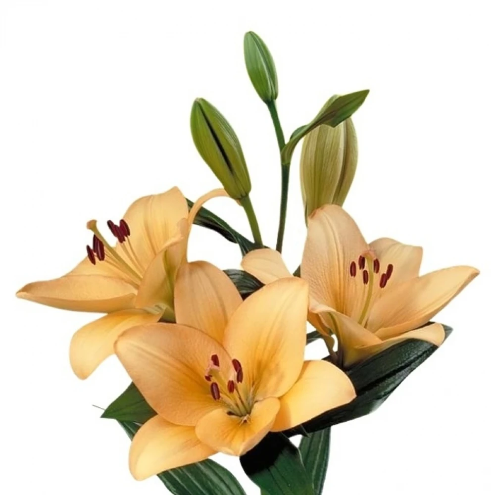 Kromě růží se nabízí řezané lilie. Co třeba La Menorca? Tento kultivar má nádherné vzpřímené květy vanilkové až světle oranžové barvy a patří mezi nejelegantnější řezané květiny do vázy.