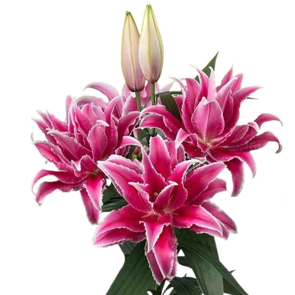 Naše orientální lilie 'Dubbel' jsou dovezeny se zcela uzavřenými květy, což nejen zaručuje jejich čerstvost, ale také prodlužuje dobu, po kterou mohou kvést a obohacovat váš interiér svým nezapomenutelným parfémem. Při výběru těchto květin dáváme přednost těm, které mají největší počet květů, největší květy nebo nejdelší stonek, aby naše nabídka představovala to nejlepší, co můžeme z trhu s liliami nabídnout.