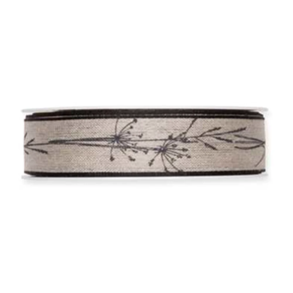 Lněná stuha s potiskem trávy hnědá 25mm x 15m