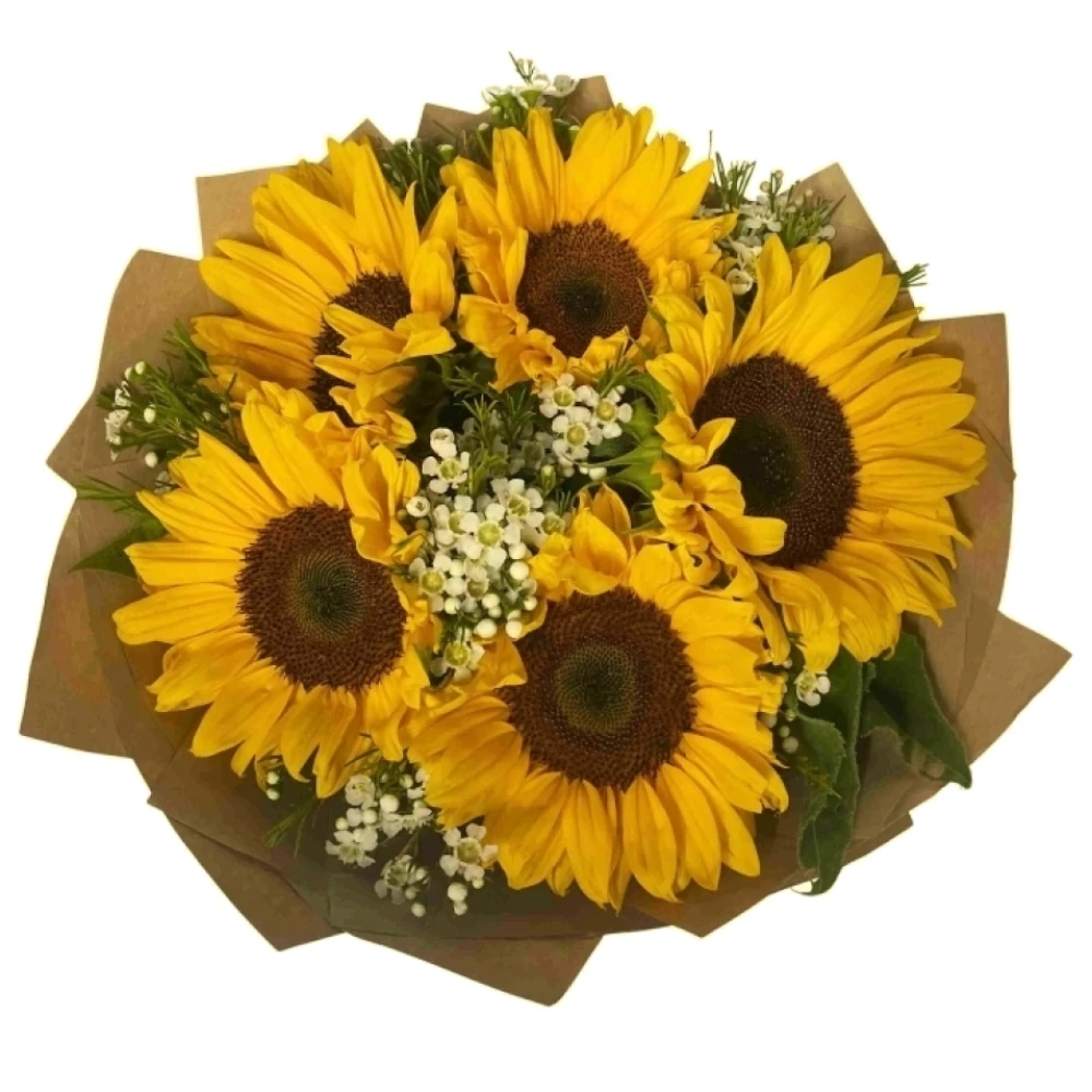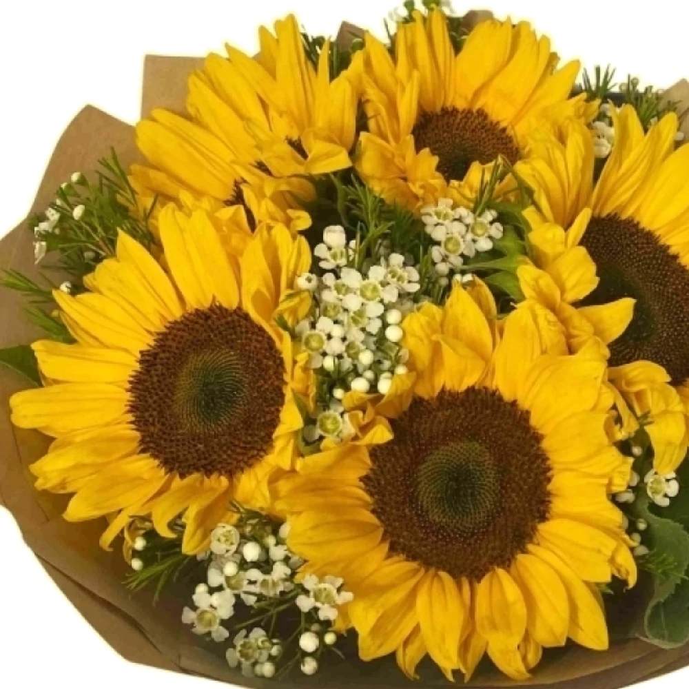 Kytice slunečnic jako symbol tepla a štěstí, přinášející kousek letního slunce do každého interiéru. Slunečnice dovážíme z Holandska a Izraele ve stádiu zralosti květu 2-3 a 3-3 tím ze zaručená zcela čerstvost a dlouhá výdrž ve váze.