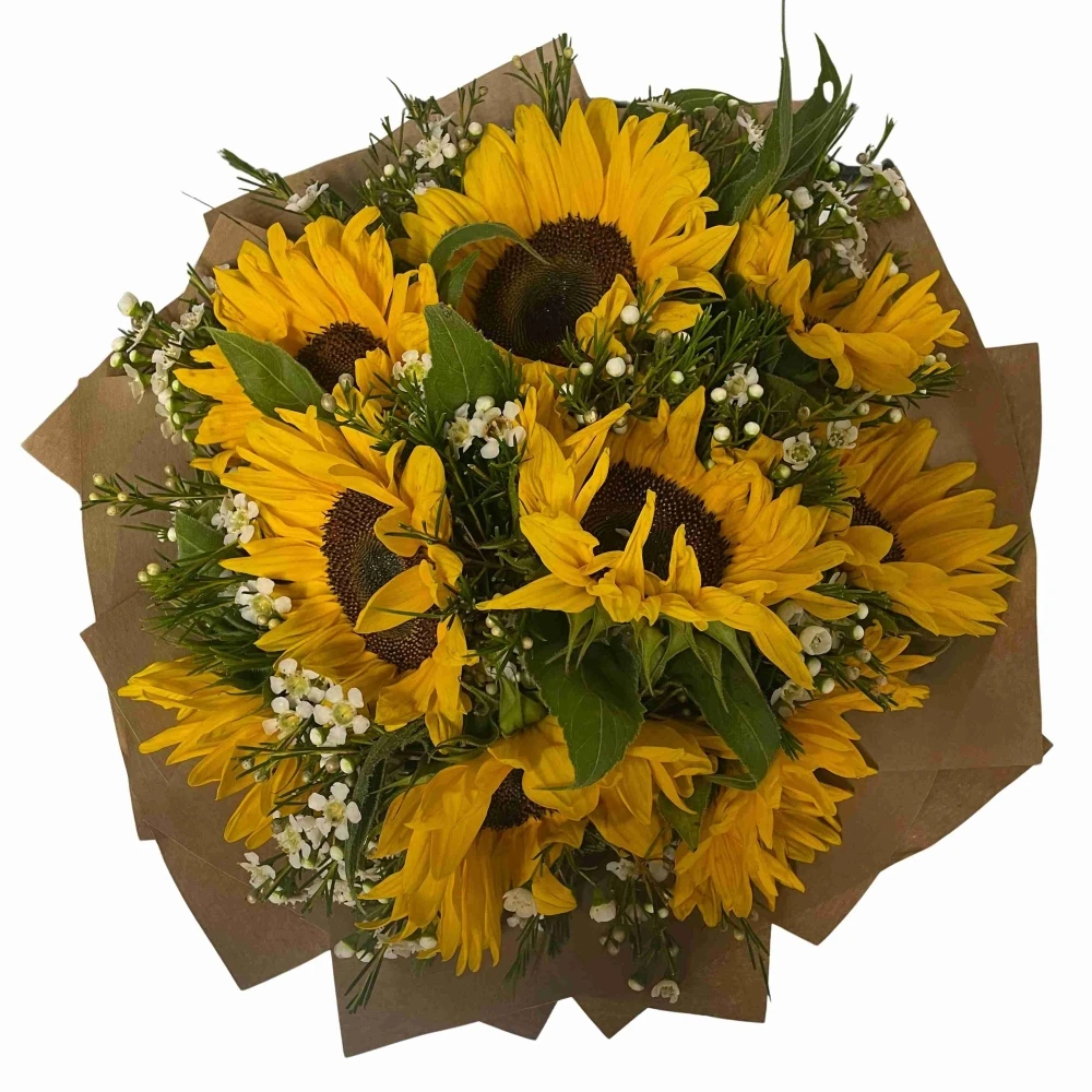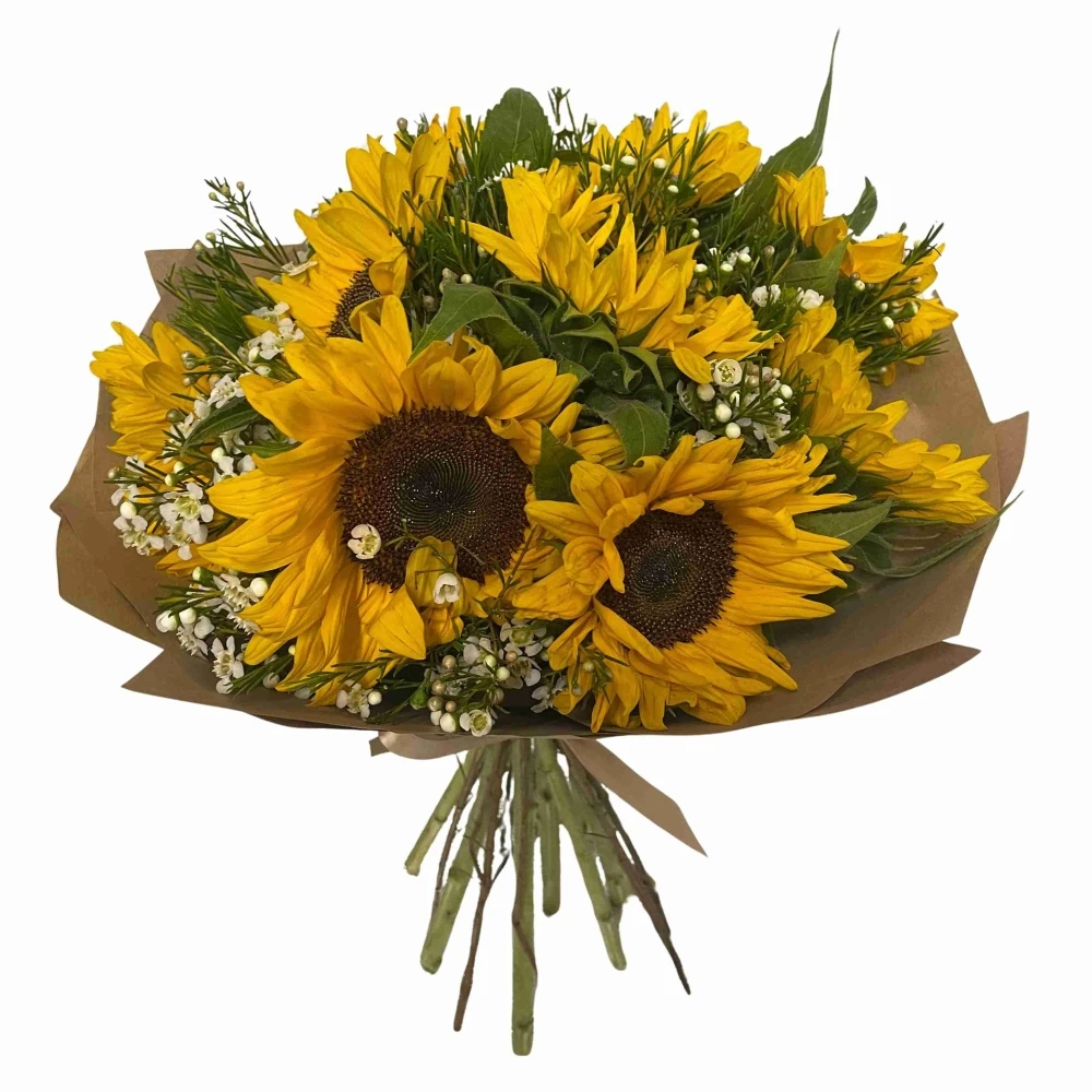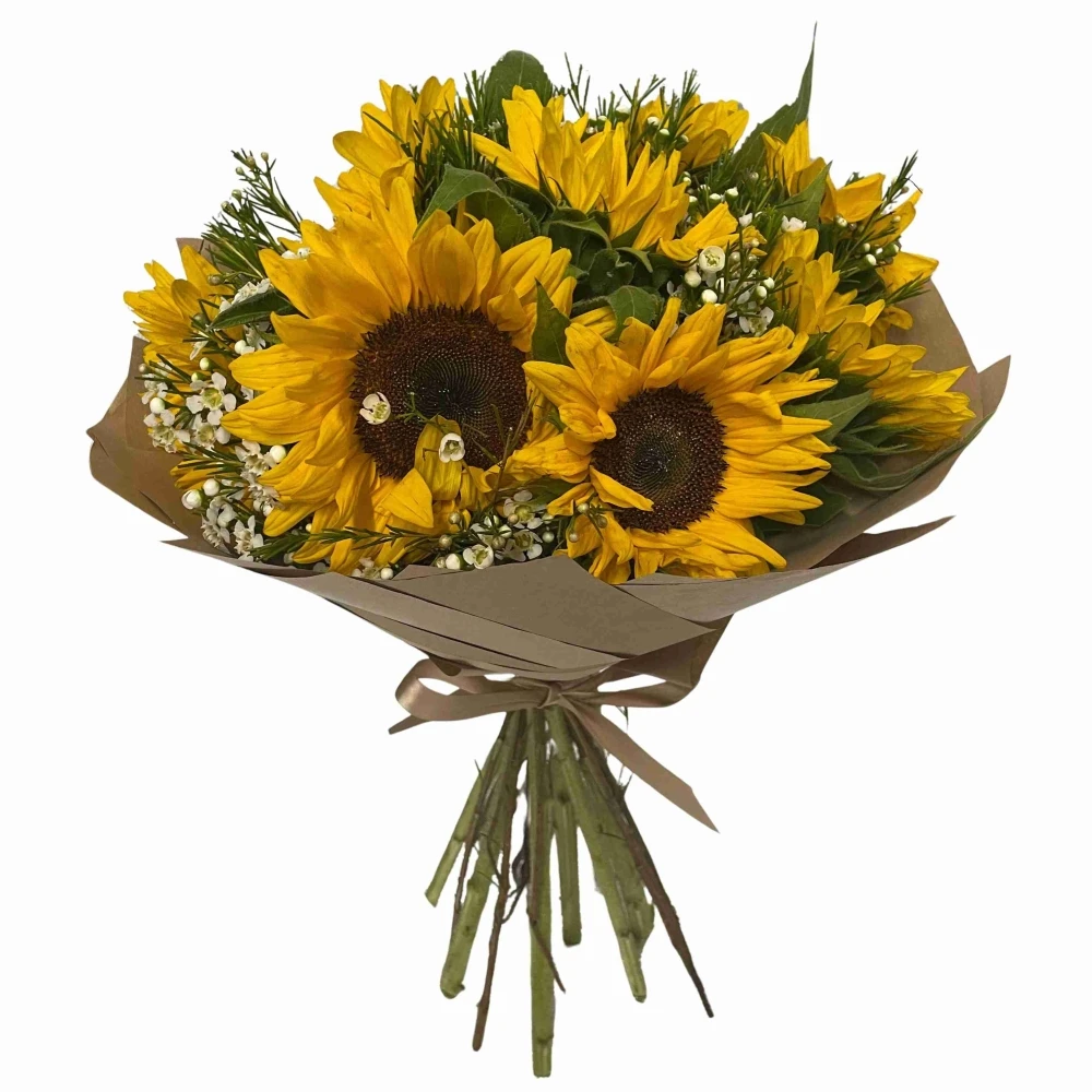 Kytice slunečnic jako symbol tepla a štěstí, přinášející kousek letního slunce do každého interiéru. Slunečnice dovážíme z Holandska a Izraele ve stádiu zralosti květu 2-3 a 3-3 tím ze zaručená zcela čerstvost a dlouhá výdrž ve váze.