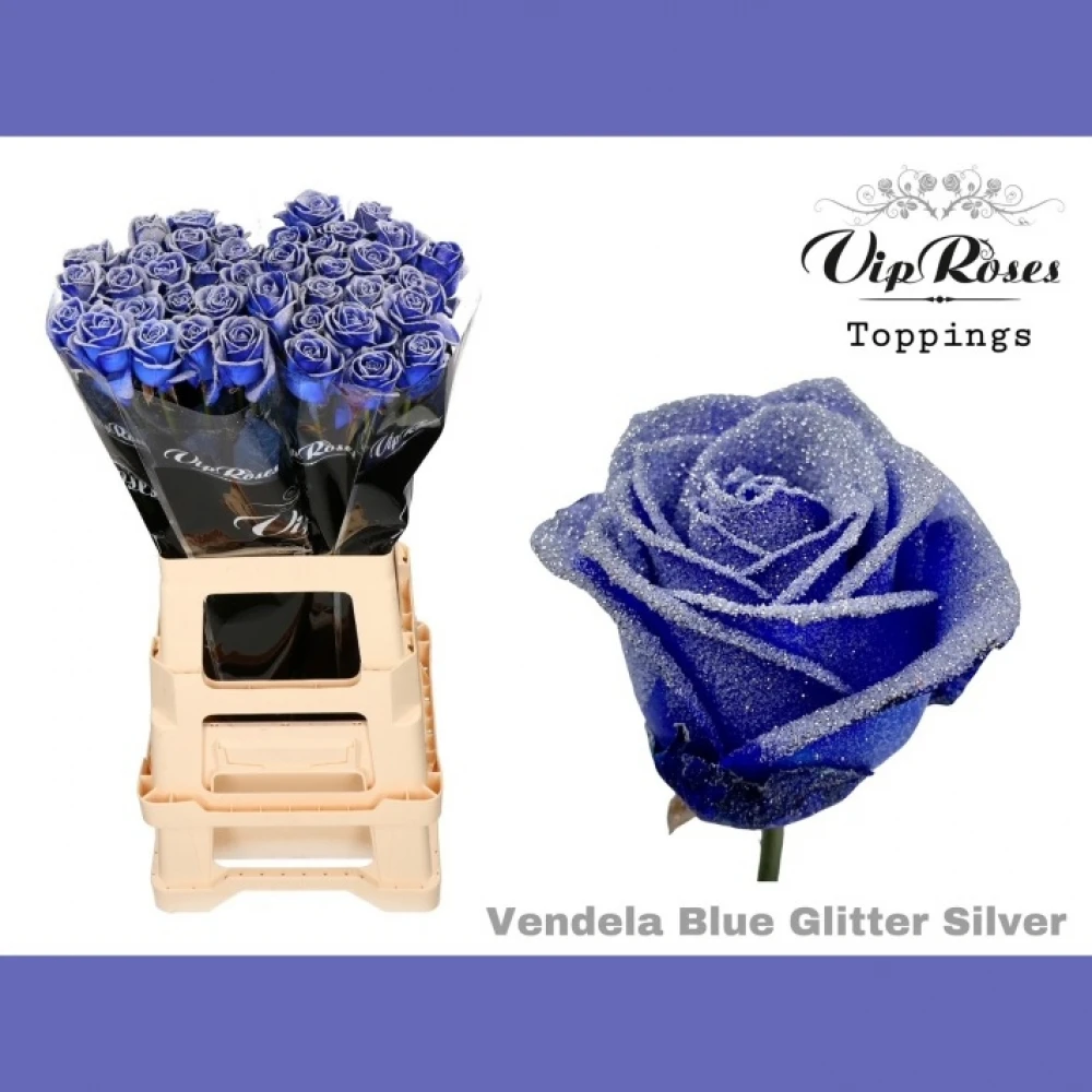 - základem je čerstvá růže Vendela, která je ihned po sklizni obarvena na modro speciální a zdravotně nezávadnou barvou a následně je vylepšena o stříbrný prášek,
