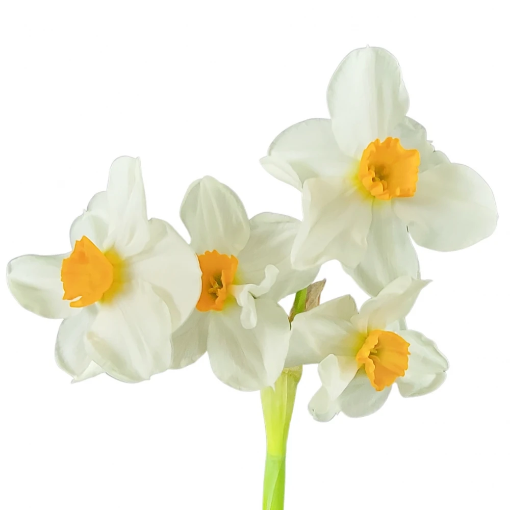 Bílé narcisy se žlutým středem rozdávají jarní náladu na všechny strany. Umístěte je samostatně do vázy nebo přidejte další jarní květiny a těšte se z jejich krásných a voňavých květů.