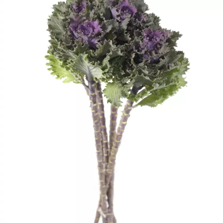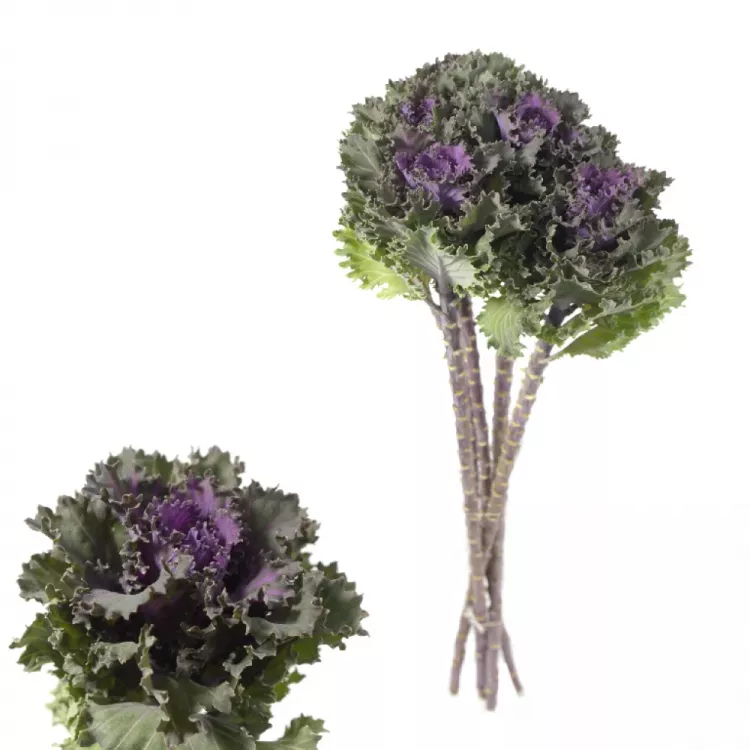 Brassica nebo také ozdobné zelí, je dodáváno na květinové burzy v délkách 45 až 80cm, opět velikost květů lze odhadnout podle počtu v balení od 25ks do 80ks. Podle počtu v balení lze určit velikost květu, čím méně v balení tím větší květy. Barvy jsou od bílé přes žlutou až po tmavě fialovou. Řezaná brassica Vám vydrží ve váze čerstvá až 2 týdny. Balení a rozvoz této květiny je opět formou uložení na sucho, případné deformace květů zmizí, jakmile se květina napije.