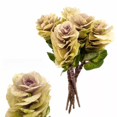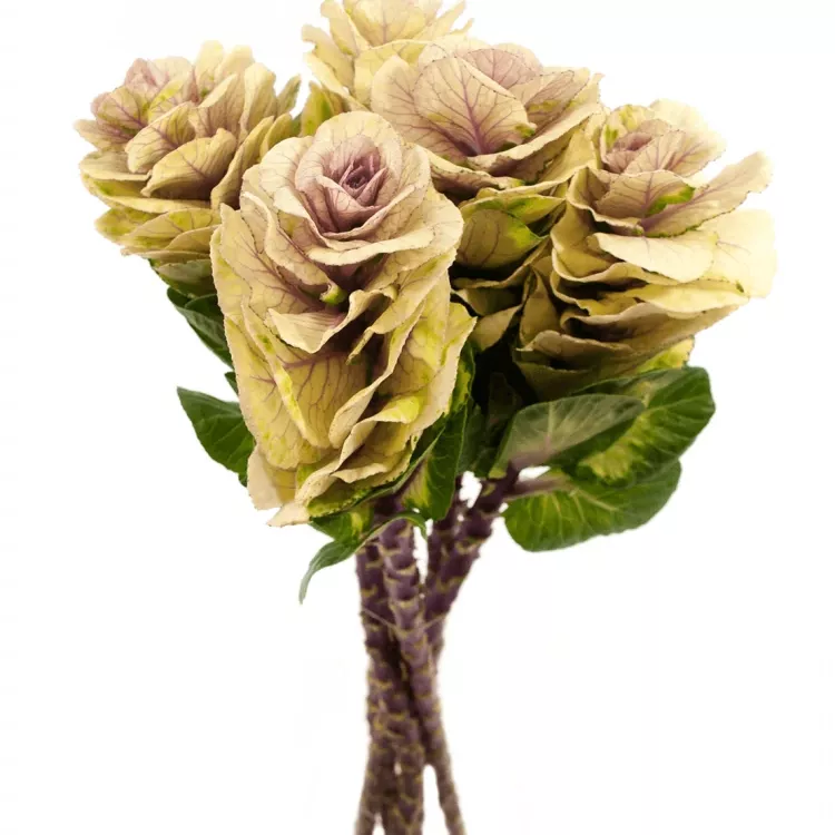 Brassica nebo také ozdobné zelí, je dodáváno na květinové burzy v délkách 45 až 80cm, opět velikost květů lze odhadnout podle počtu v balení od 25ks do 80ks. Podle počtu v balení lze určit velikost květu, čím méně v balení tím větší květy. Barvy jsou od bílé přes žlutou až po tmavě fialovou. Řezaná brassica Vám vydrží ve váze čerstvá až 2 týdny. Balení a rozvoz této květiny je opět formou uložení na sucho, případné deformace květů zmizí, jakmile se květina napije.