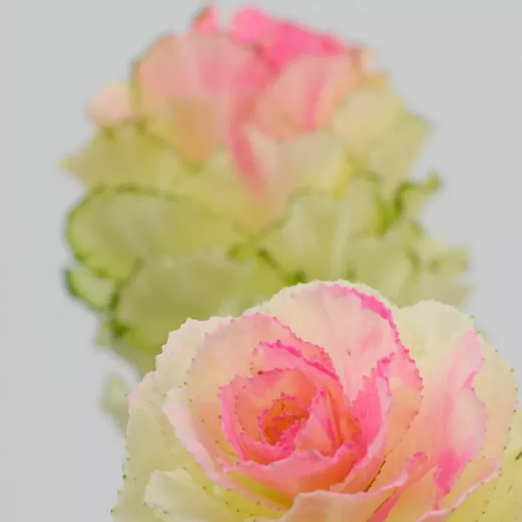 Brassica nebo také ozdobné zelí, je dodáváno na květinové burzy v délkách 45 až 80cm, opět velikost květů lze odhadnout podle počtu v balení od 25ks do 80ks. Podle počtu v balení lze určit velikost květu, čím méně v balení tím větší květy. Barvy jsou od bílé přes žlutou až po tmavě fialovou. Řezaná brassica Vám vydrží ve váze čerstvá až 2 týdny. Balení a rozvoz této květiny je opět formou uložení na sucho, případné deformace květů zmizí, jakmile se květina napije.