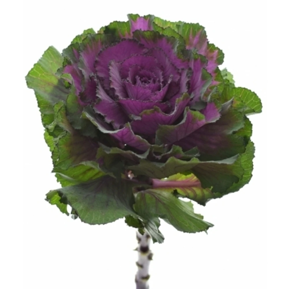 Brassica nebo také ozdobné zelí, je dodáváno na květinové burzy v délkách 45 až 80cm, opět velikost květů lze odhadnout podle počtu v balení od 25ks do 80ks. Podle počtu v balení lze určit velikost květu, čím méně v balení tím větší květy. Barvy jsou od bílé přes žlutou až po tmavě fialovou. Řezaná brassica Vám vydrží ve váze čerstvá až 2 týdny. Balení a rozvoz této květiny je opět formou uložení na sucho, případné deformace květů zmizí, jakmile se květina napije.