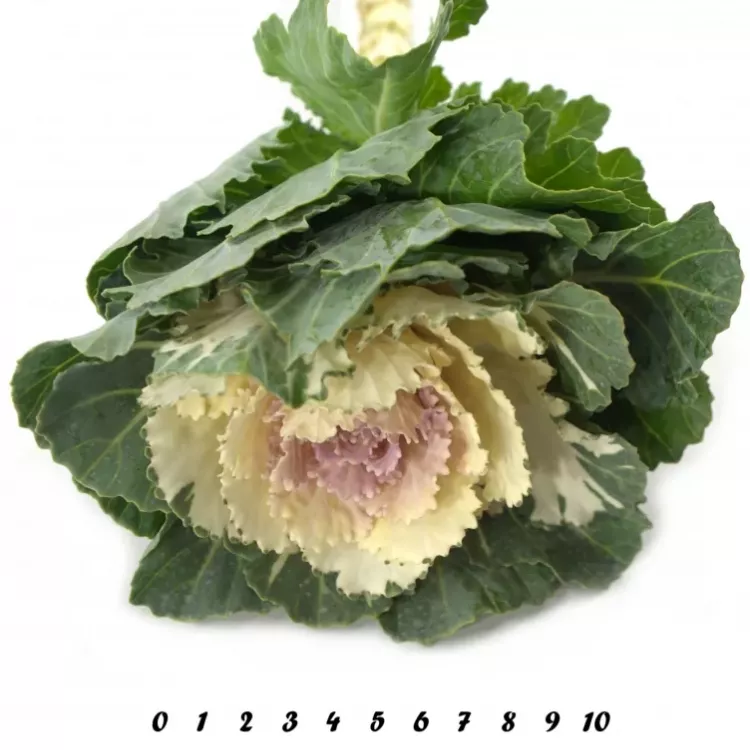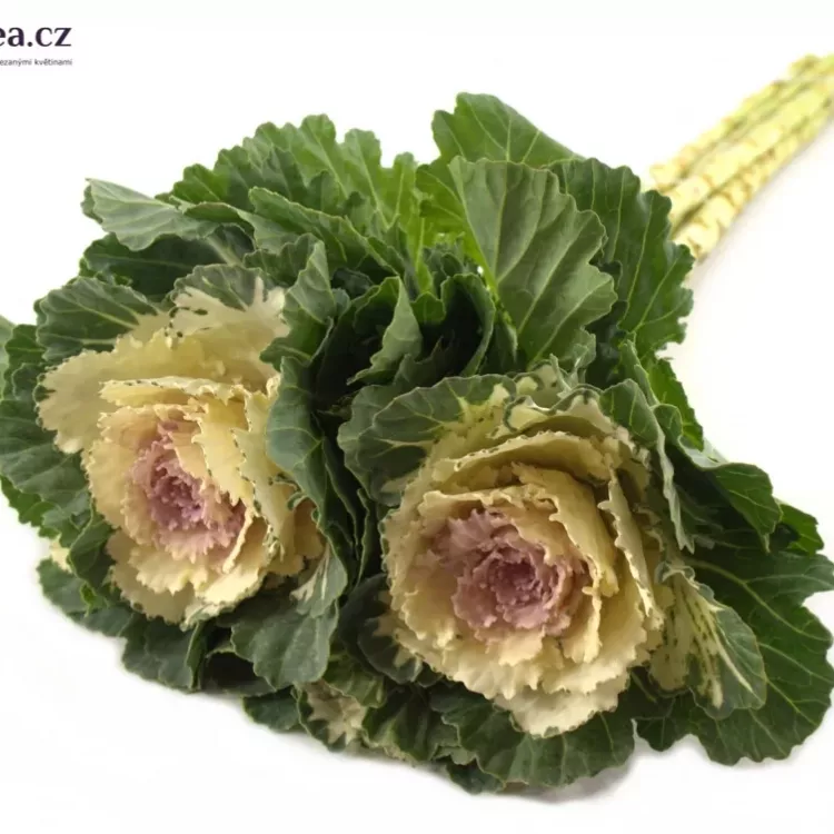 Brassica nebo také ozdobné zelí, je dodáváno na květinové burzy v délkách 45 až 80cm, opět velikost květů lze odhadnout podle počtu v balení od 25ks do 80ks. Podle počtu v balení lze určit velikost květu, čím méně v balení tím větší květy. Barvy jsou od bílé přes žlutou až po tmavě fialovou. Řezaná brassica Vám vydrží ve váze čerstvá až 2 týdny. Balení a rozvoz této květiny je opět formou uložení na sucho, případné deformace květů zmizí, jakmile se květina napije.