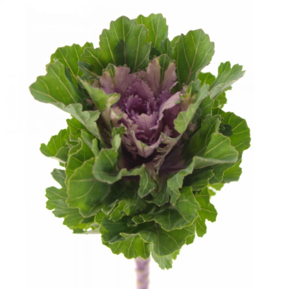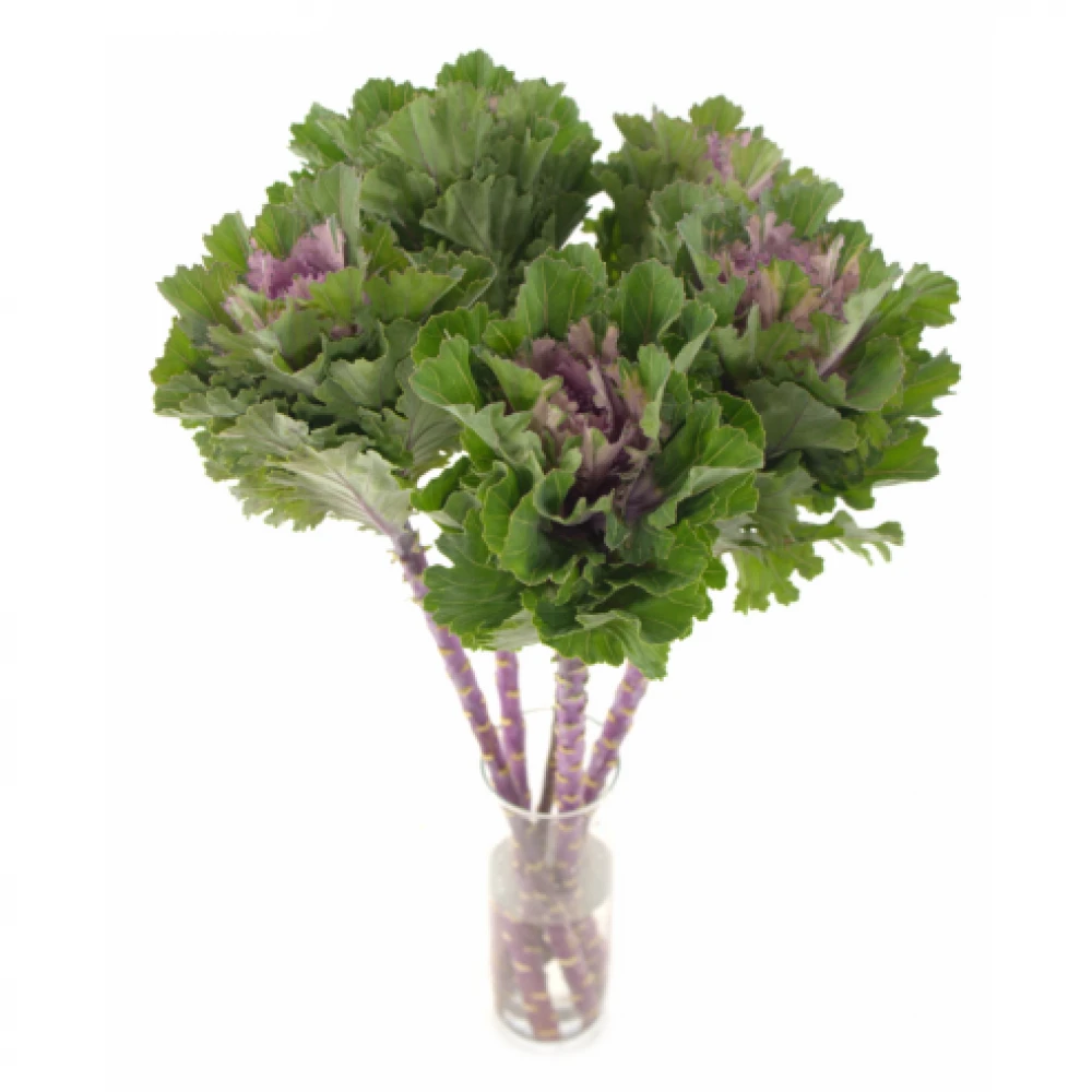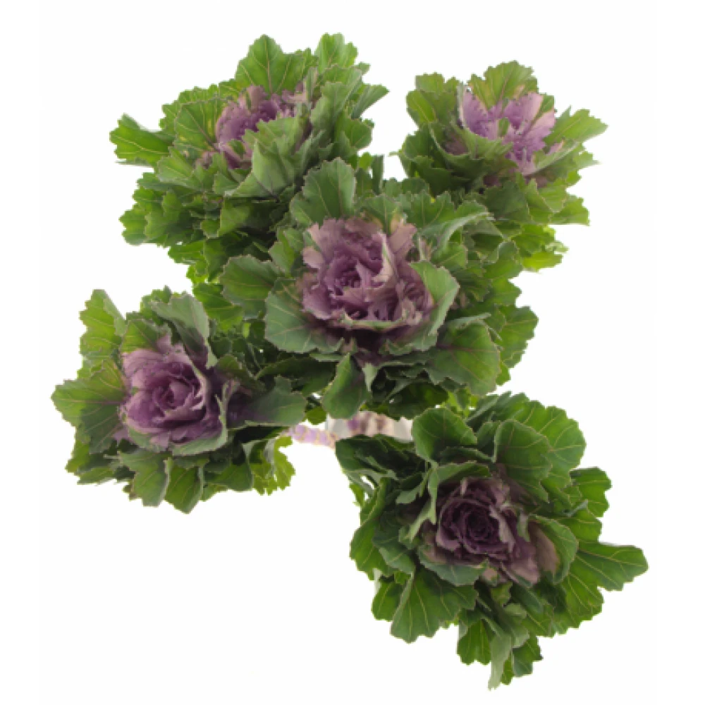 Brassica nebo také ozdobné zelí, je dodáváno na květinové burzy v délkách 45 až 80cm, opět velikost květů lze odhadnout podle počtu v balení od 25ks do 80ks. Podle počtu v balení lze určit velikost květu, čím méně v balení tím větší květy. Barvy jsou od bílé přes žlutou až po tmavě fialovou. Řezaná brassica Vám vydrží ve váze čerstvá až 2 týdny. Balení a rozvoz této květiny je opět formou uložení na sucho, případné deformace květů zmizí, jakmile se květina napije.