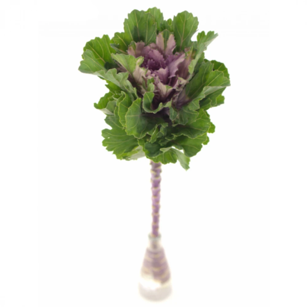 Brassica nebo také ozdobné zelí, je dodáváno na květinové burzy v délkách 45 až 80cm, opět velikost květů lze odhadnout podle počtu v balení od 25ks do 80ks. Podle počtu v balení lze určit velikost květu, čím méně v balení tím větší květy. Barvy jsou od bílé přes žlutou až po tmavě fialovou. Řezaná brassica Vám vydrží ve váze čerstvá až 2 týdny. Balení a rozvoz této květiny je opět formou uložení na sucho, případné deformace květů zmizí, jakmile se květina napije.