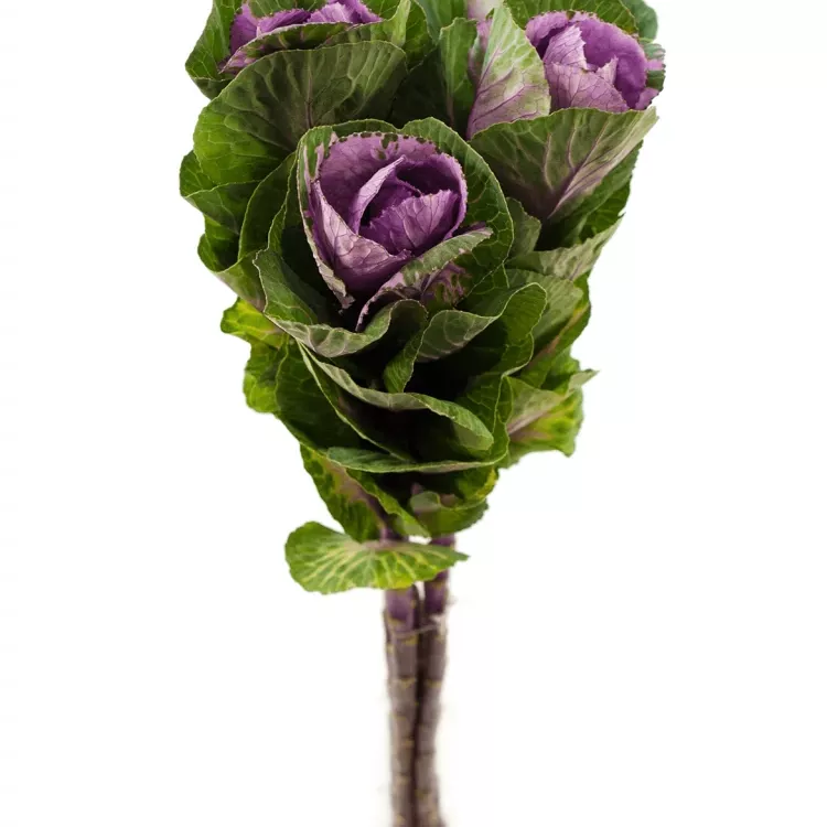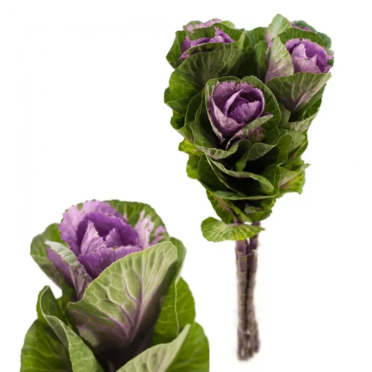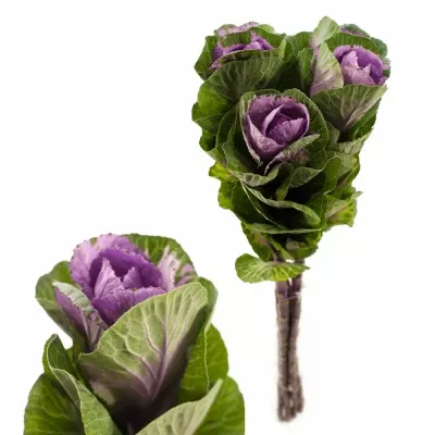 Brassica nebo také ozdobné zelí, je dodáváno na květinové burzy v délkách 45 až 80cm, opět velikost květů lze odhadnout podle počtu v balení od 25ks do 80ks. Podle počtu v balení lze určit velikost květu, čím méně v balení tím větší květy. Barvy jsou od bílé přes žlutou až po tmavě fialovou. Řezaná brassica Vám vydrží ve váze čerstvá až 2 týdny. Balení a rozvoz této květiny je opět formou uložení na sucho, případné deformace květů zmizí, jakmile se květina napije.