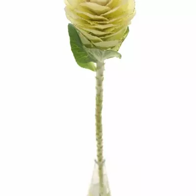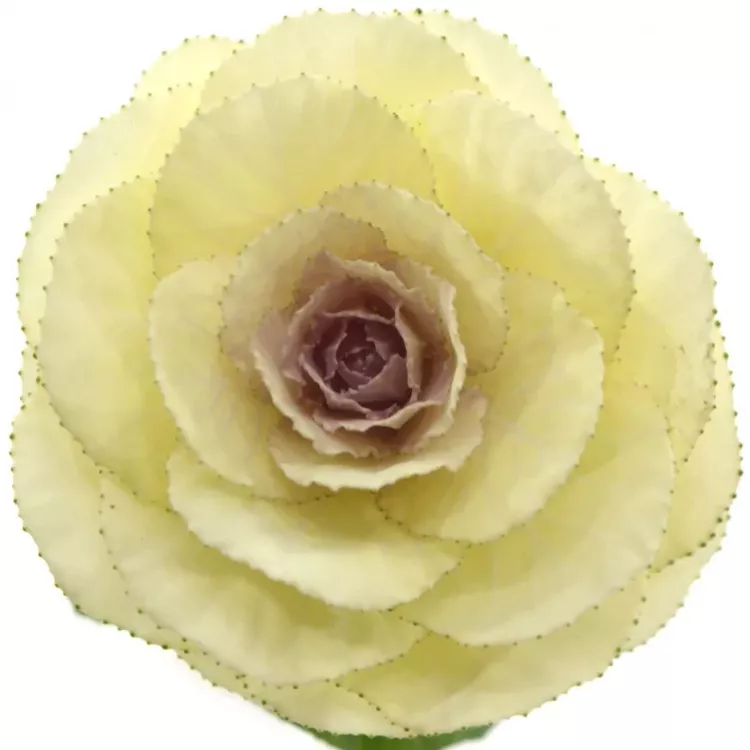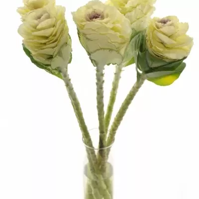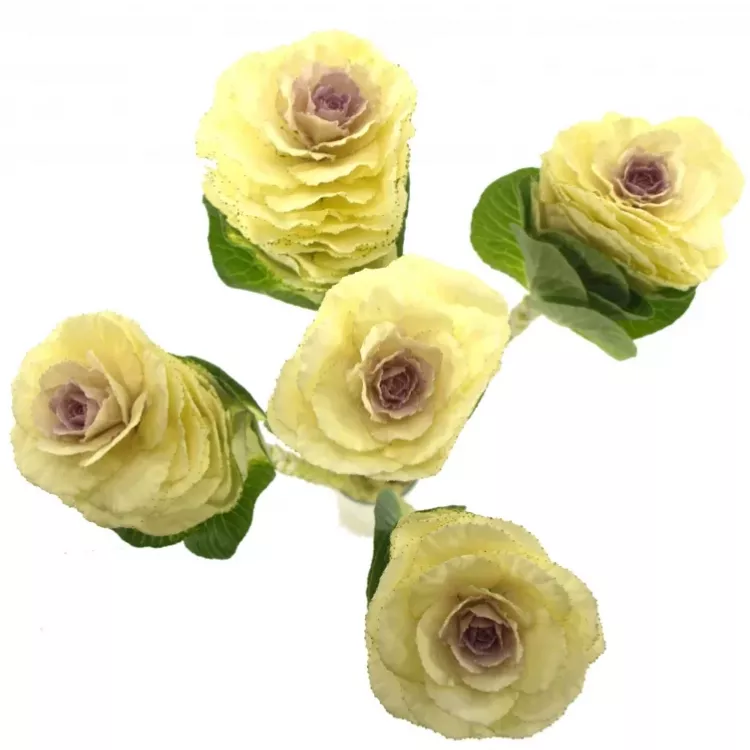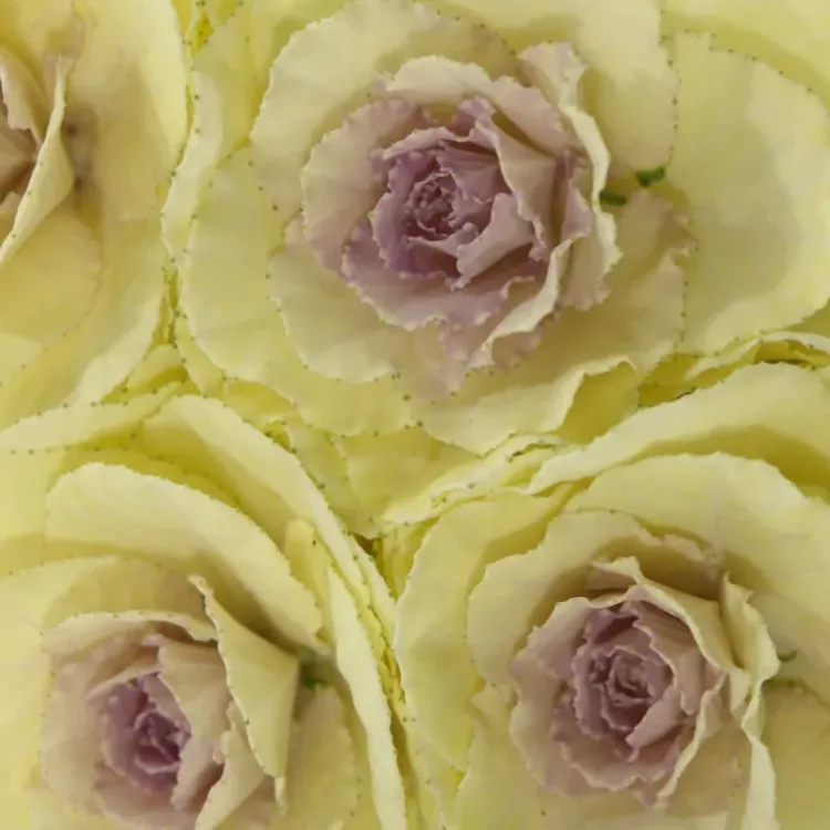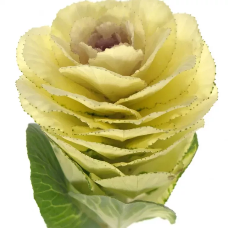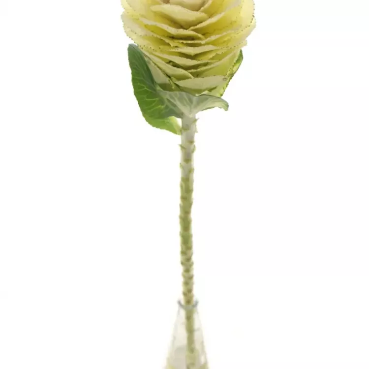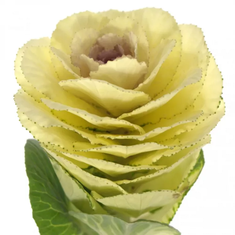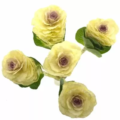 Právě k tomu je určené toto okrasné zelí v krémově žluté barvě. Jeho květ je veliký a skládá se z kulatých okvětních plátků s jemnou vlnkou. Krásně se hodí do kulaté a bohatě míchané kytice.