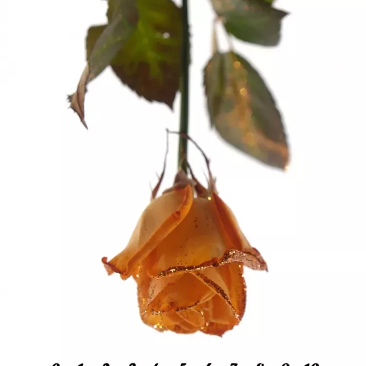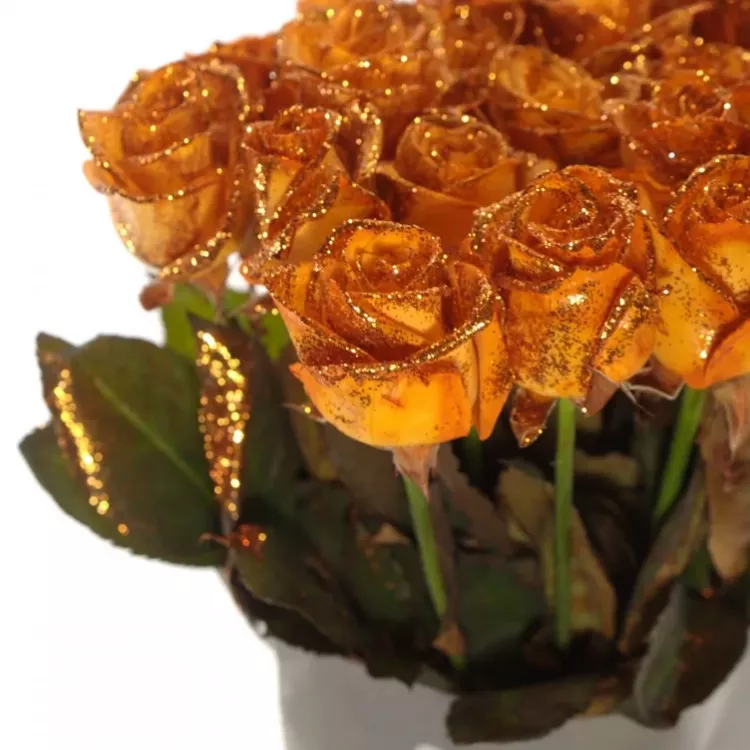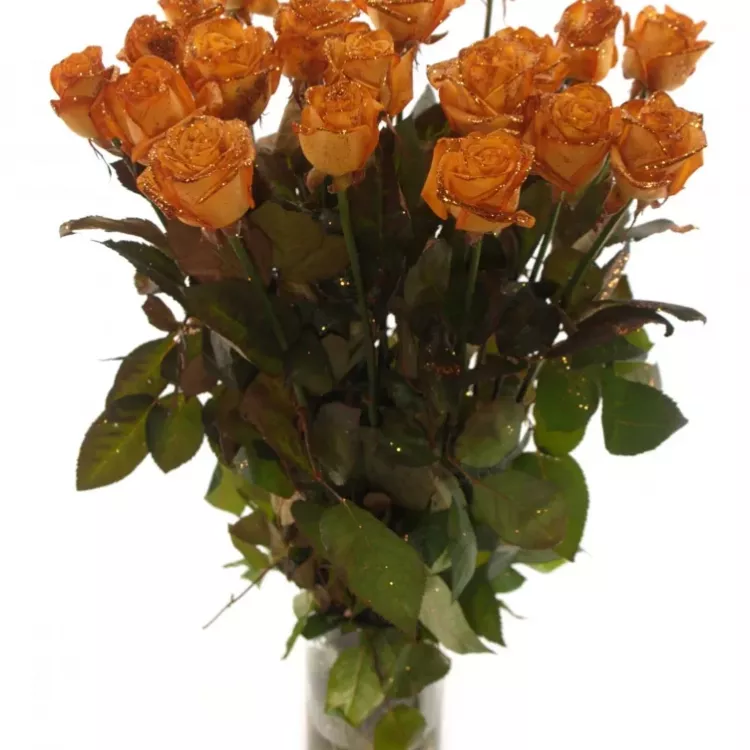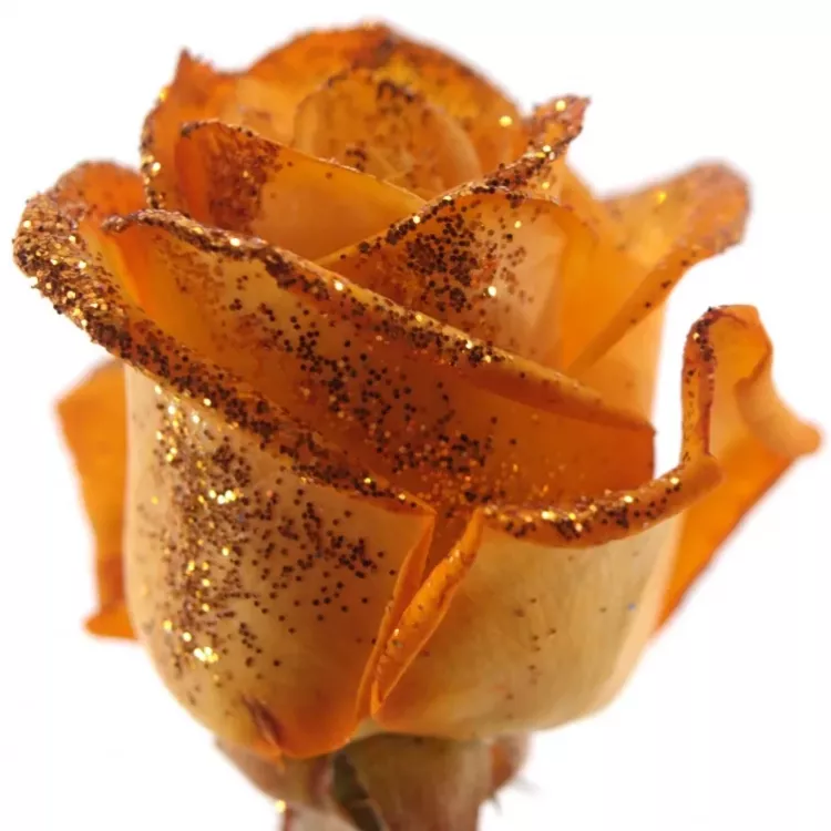 Oranžová růže Orange Glitter Vendela je skvostem mezi růžemi, který zaujme na první pohled. S vysokým počtem okvětních lístků, tato růže vytváří bohatý a plný vzhled. Její živé oranžové barvy, které připomínají jemně posypaný třpyt, dávají květu zářivý a energický vzhled. Beztrnné stonky této růže zajišťují snadnou a bezpečnou manipulaci. Pěstované v ideálních podmínkách, růže představují nadřazenou kvalitu a velikost.