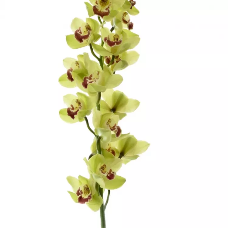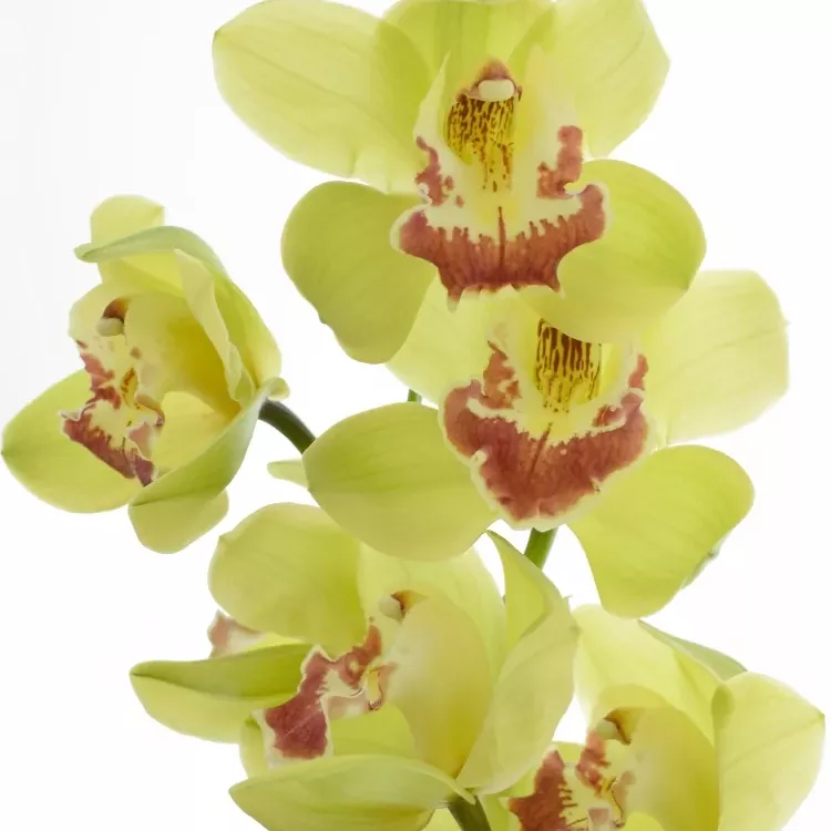 Řezané orchideje dovážíme z Holandska. Cymbidium patří mezi ty, kteří milují zimu. Květy jsou krásně žluté a ve středu načervenalé - až do hněda. Bude ji to slušet i samotné ve váze.