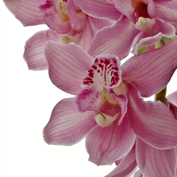Cymbidium, nebo také člunatec, patří mezi orchideje milující zimu. Proto nejsou v květináči vhodné do bytu, ale jako řezané květiny jsou přímo vítány. Vdechněte Vašemu domovu špetku luxusu a vznešenosti.