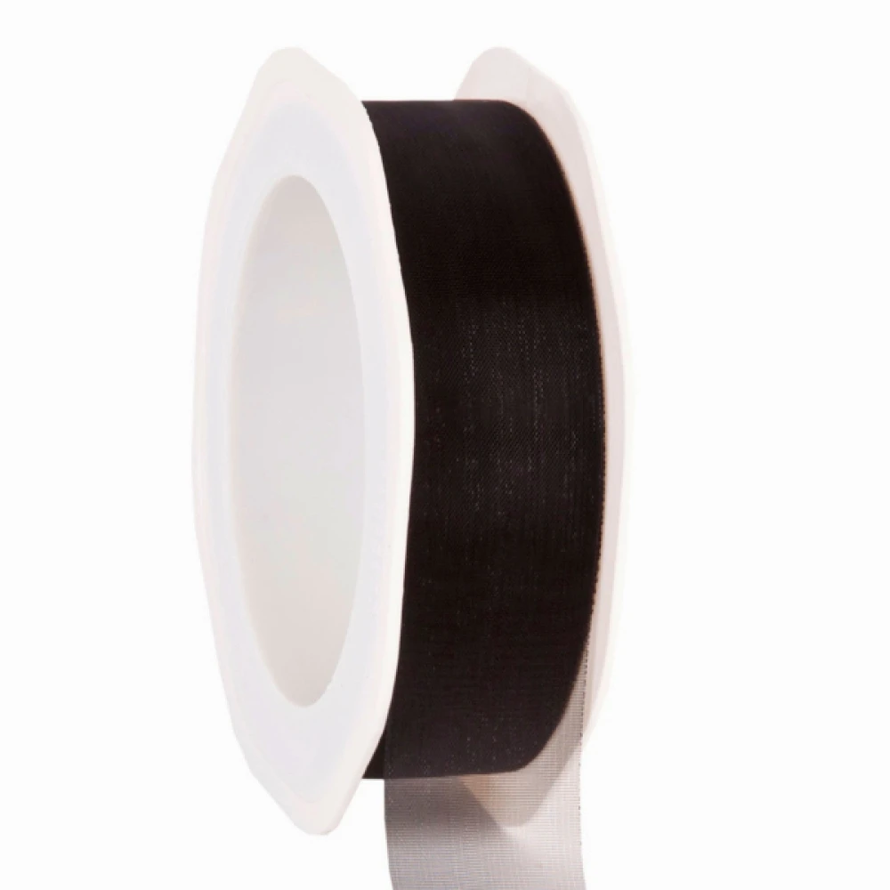 Organzová stuha se střiženým okrajem Voile 25 mm x 25 m černá