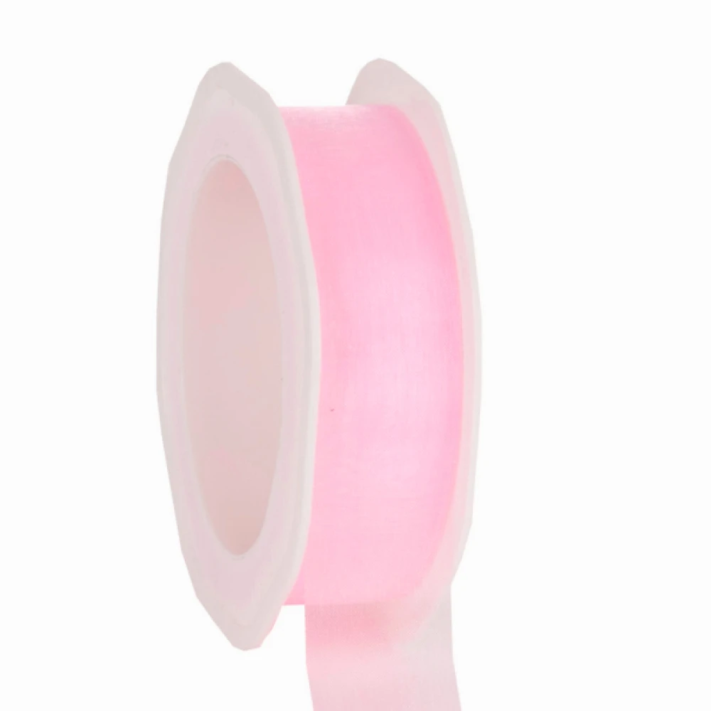 Organzová stuha se střiženým okrajem Voile 25 mm x 25 m růžová
