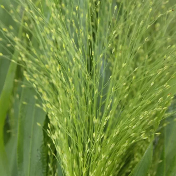 Kultivar Panicum Fountain má jemné vlásky, které na nás prokukují nad tenkým stonkem s listy. Dekorační zeleň je vhodná na různé aranžmá či do lučně založených kytic.