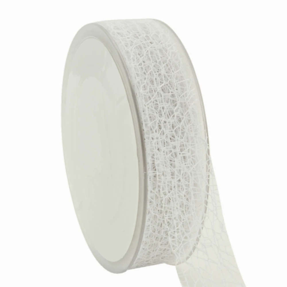 Pavučinová dekorační stuha 25 mm x 20 m bílá