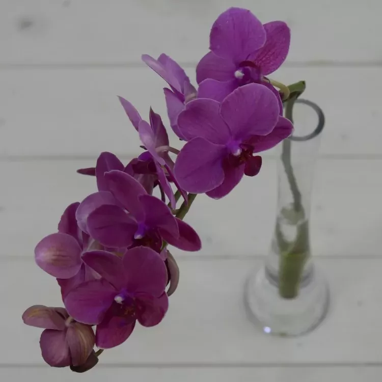 Taková překrásná řezaná orchidej do vázy s vysokým počtem působivě zabarvených květů vyrazí dech každé ženě. Nejvíce to řezaným orchidejím sluší ve skleněné váze, kde vynikne jejich skutečná krása a vysoká dekorativnost.