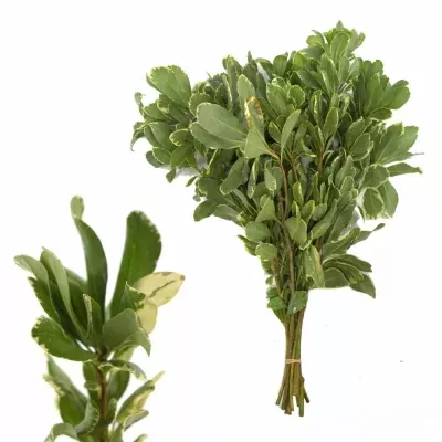 Čerstvé, elegantní a široce využitelné. To je Pittosporum, nebo také slizoplod. Tato dekorační zeleň se může pochlubit lesklými tmavě zeleným listy, které působí zdravě a svěže. Trs má rovný stonek a je velmi bohatý na listy.