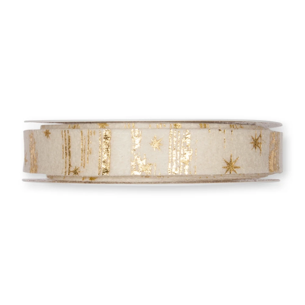 - Potištěná filcová stuha s malými hvězdami krémová 20mm x 5m