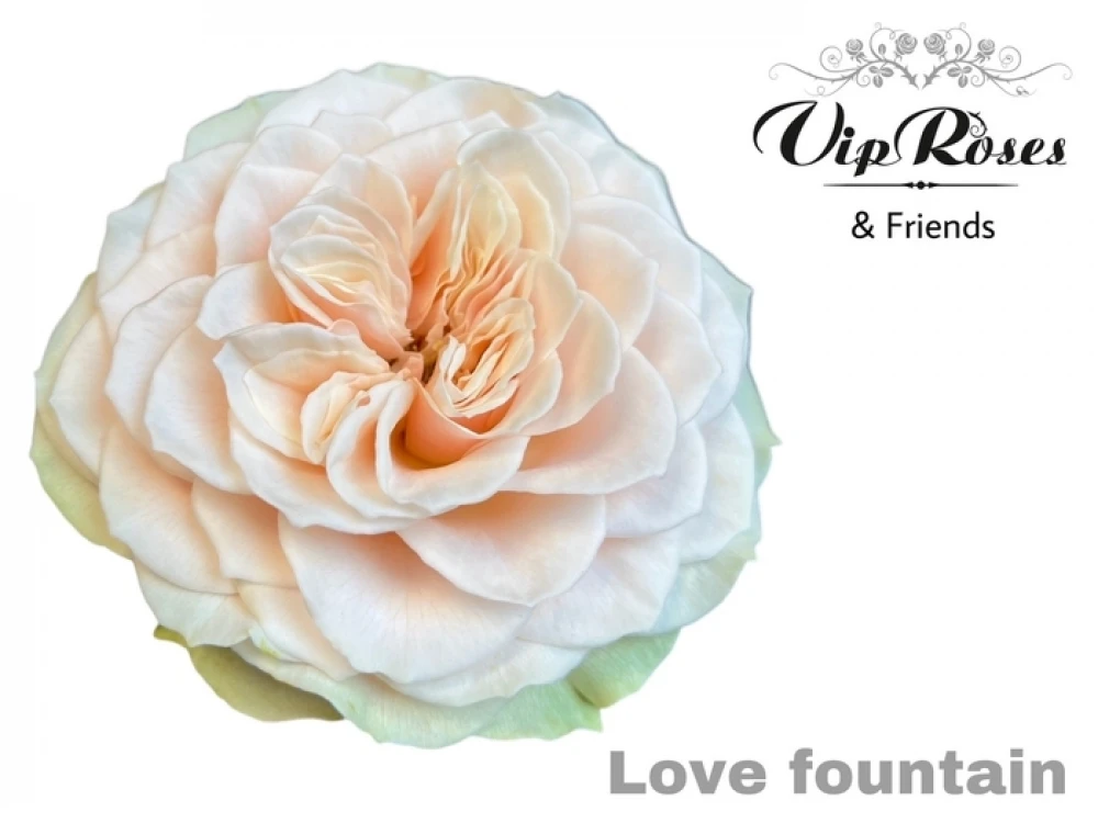 Růže Love Fountain oplývá kouzlem svého názvu. Je to zahradní růže, která ve své struktuře a barevném provedení připomíná romantické okamžiky u třpytivé fontány. Delikátní přechody od krémové po jemné růžové tóny představují vrchol elegance. Růže jsou mistrovským dílem pěstovaným zkušenými odborníky společnosti V.I.P. Roses, která je známá svým inovativním a kreativním přístupem k šlechtění růží.