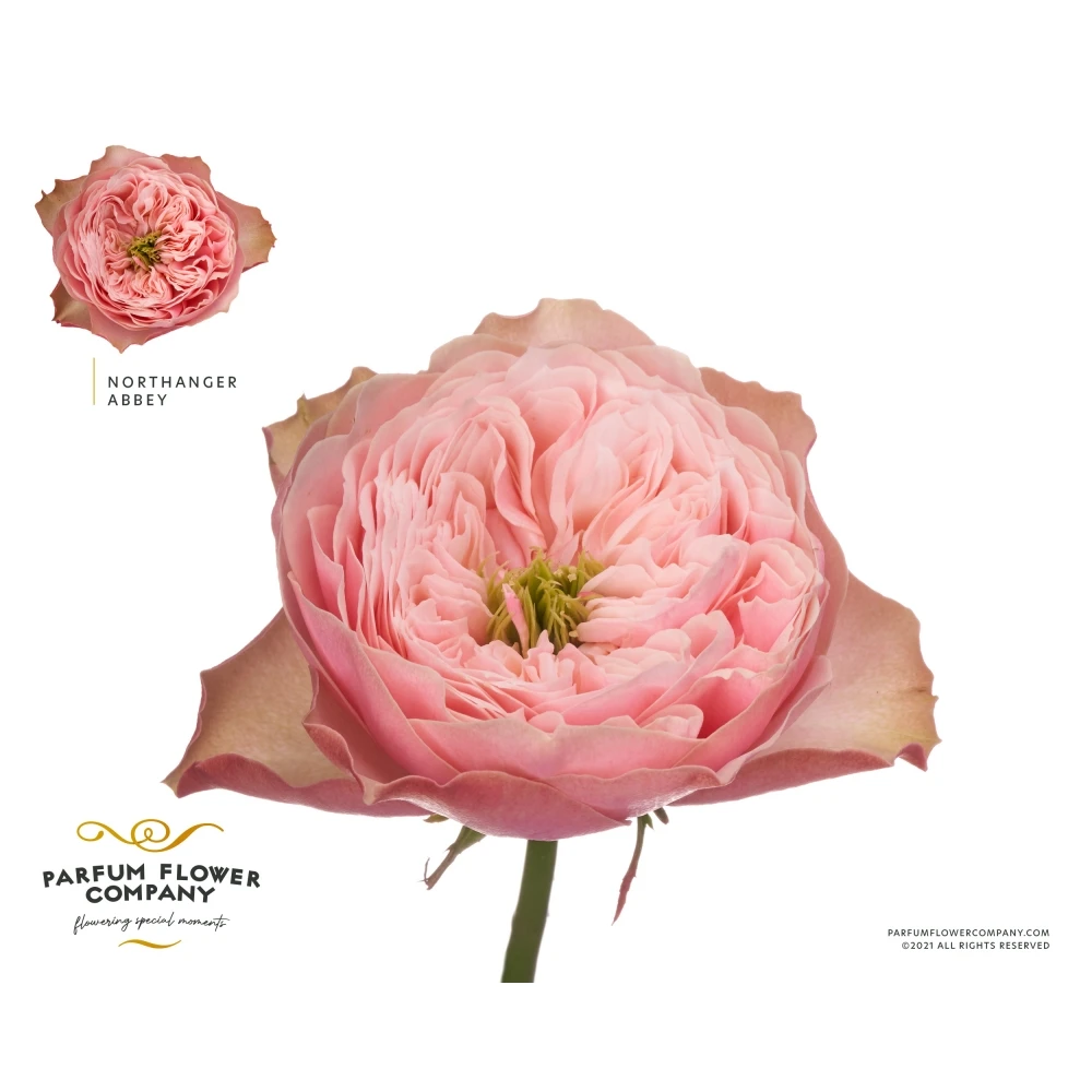 Northanger Abbey je symbolem elegance a sofistikovanosti. Její velké, plné květy se otevírají do nádherné podoby, zatímco její dlouhá výdrž čas ve váze zajišťuje, že její krása vydrží. Růži vám přináší společnost Parfum Flower Company, známá svými výjimečnými a voňavými zahradními růžemi. Má jemný růžový odstín připomínající něžnou tvářenku na nevěstiných tvářích nebo jemné pohlazení prvního svítání.