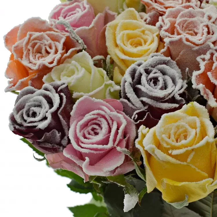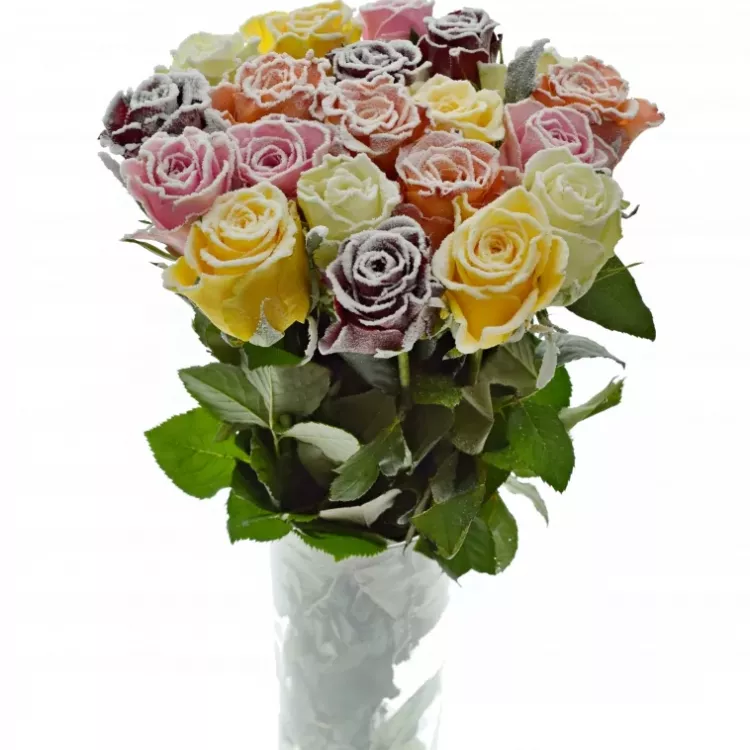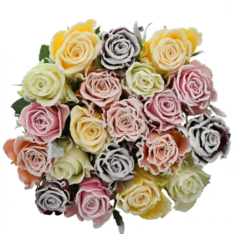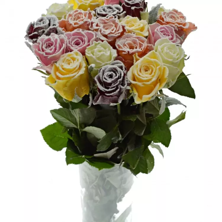 Mix Frost je kolekce růží, které se pyšní unikátním zasněženým kabátem připraveným v holandské dílně V.I.P. Roses Sassen. Tento mix využívá krémových a bílých růží jako plátno pro speciální úpravu, díky které vyniknou v jakékoli kytici nebo jako samostatná dekorace.