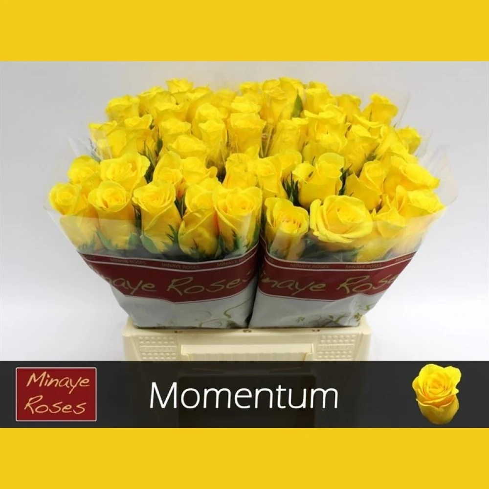 Růže MOMENTUM ztělesňuje sluneční záře svým intenzivním žlutým odstínem. Svým vzhledem přinese do každého prostoru svěžest jara. Růže byla speciálně vyvinuta šlechtiteli z Dümmen Orange speciálně pro africké pěstitele růží.