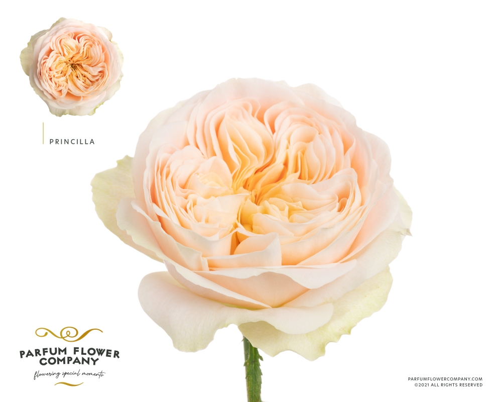 Priscilla je růže, která vyniká svým bohatým a jemným přechodem barvy od krémové až po svěží pastelově růžovou. Její květy se otevírají do rozsáhlých, vícevrstvých kupolí, díky čemuž je tato odrůda vyhledávanou volbou pro luxusní floristické aranžmá. Šlechtitelem růže je Parfum Flower Company, která se specializuje na vytváření unikátních a voňavých růží pro ty nejvýznačnější příležitosti.